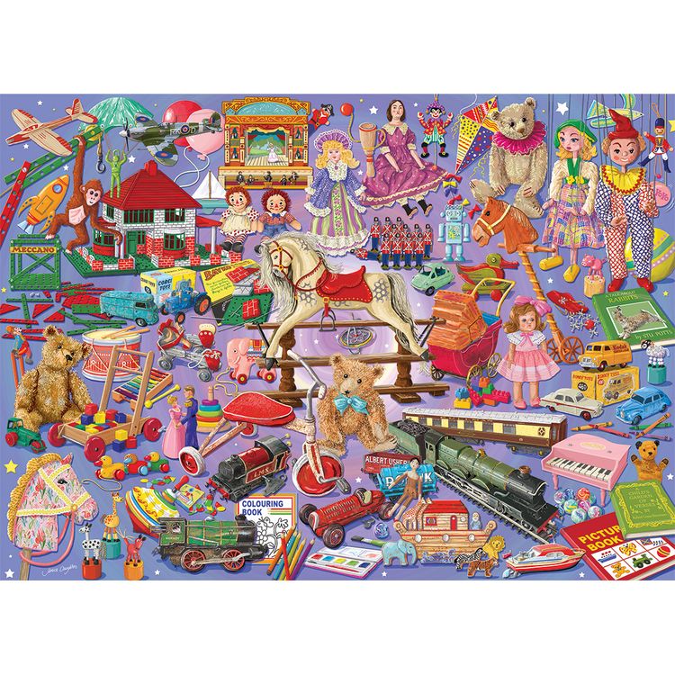 Step back into the joy of childhood with Playtime Favourites, a delightful 1000 piece jigsaw puzzle by Janice Daughters.