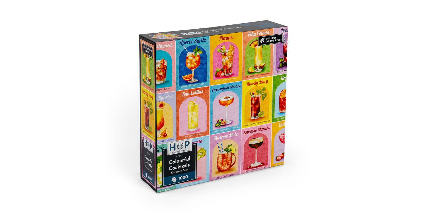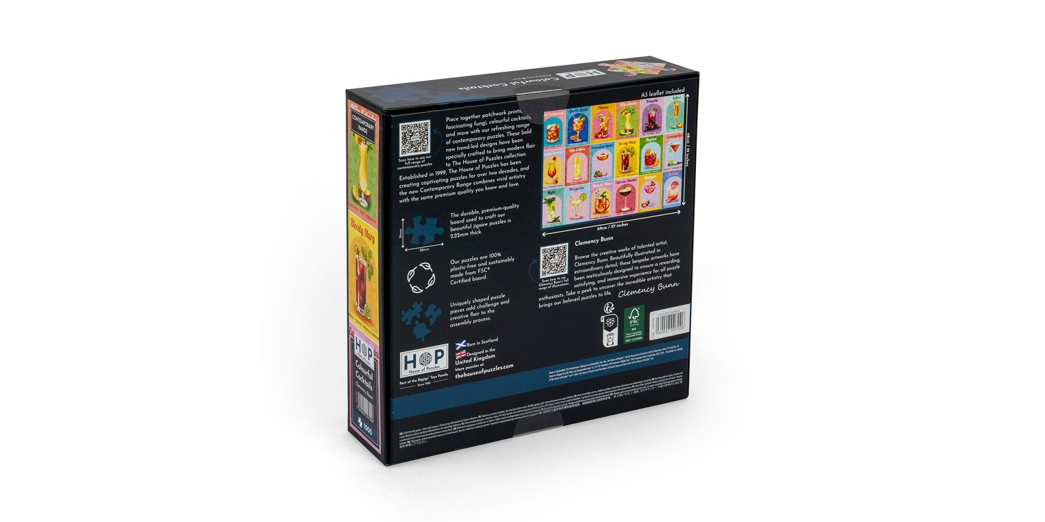 Get ready to start your next House of Puzzles project! Illustrated by extraordinary artist Clemency Bunn, the Colourful Cocktails 1000 piece jigsaw features a beautifully detailed scene to captivate both beginner and seasoned puzzle fanatics! All of our 1000 piece jigsaw puzzles are sustainably made from premium quality FSC® Certified board, promising a satisfying and seamless assembly experience.