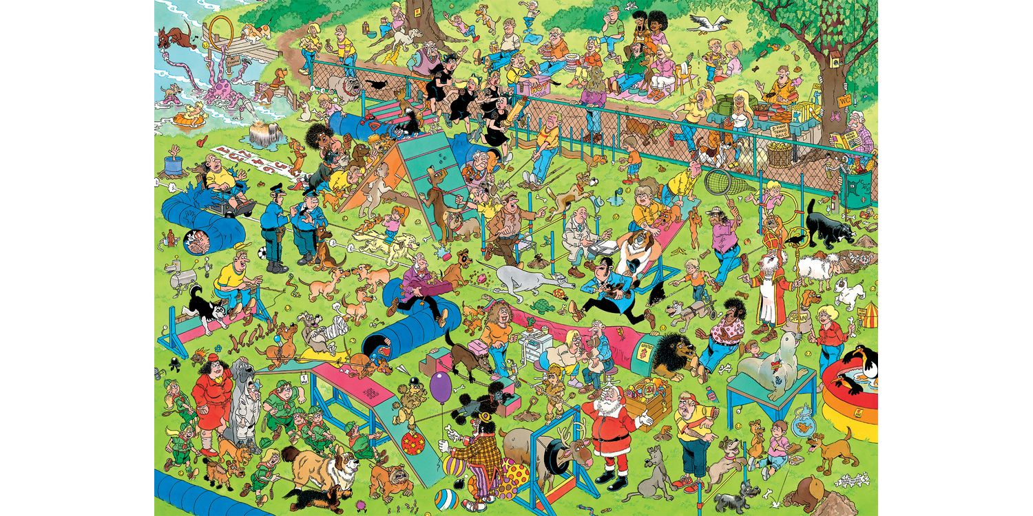 Passing the various obstacles with jumps, tunnels and footbridges is not for every participant, by the way... Octo tests the dogs' agility in his own way. And the cat causes quite a bit of chaos! A Jan van Haasteren puzzle is so much more than just a puzzle, it’s an adventure series with familiar characters playing the lead roles in a never - ending décor full of absurd details. Discover the crazy adventures of the Jan van Haasteren family! We are proud our puzzles are made from recycled cardboard in Europe. To cut the cardboard in puzzle pieces, we use the thinnest knife available. The puzzle has an almost seamless look when finished. Enjoy this Jan van Haasteren puzzle!