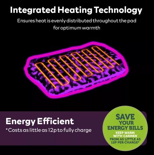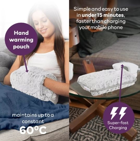 Make bedtime even cosier with this Rechargeable Hot Water Bottle from Carmen. Safe and simple to use, it comes pre-filled with water and permanently-sealed so you never have to refill with boiling hot water or worry about leaking. Charging faster than a phone in under 15 minutes, it’s almost instantly ready for overnight use and keeps the water warm while unplugged for up to 5 hours. It only costs as little as 12p* to fully charge the Hot Water Bottle, keeping yourself warm and cozy, while you snuggle up on the sofa and save on expensive energy bills. The heat also has fantastic health benefits – not only keeping you warm in winter – it also helps soothe cramps, aches and pains, as well as improve blood circulation for longer-lasting comfort. Automatic temperature control provides the optimal amount of heat up to 70-75°C, while overheat protection ensures safe use. Designed using soft, comfy material and with a built-in pouch to keep your hands warm, this electric hot water bottle is made for a warmer, more comfortable night’s sleep. *(Based off 24p per kWh)