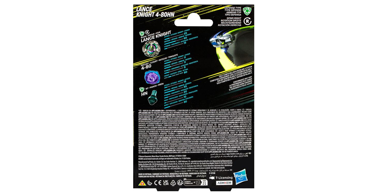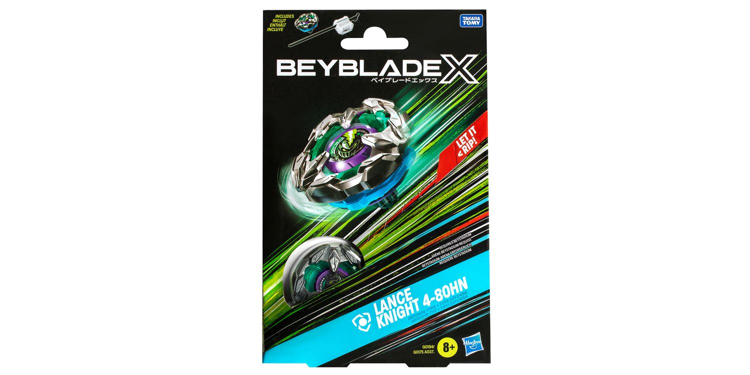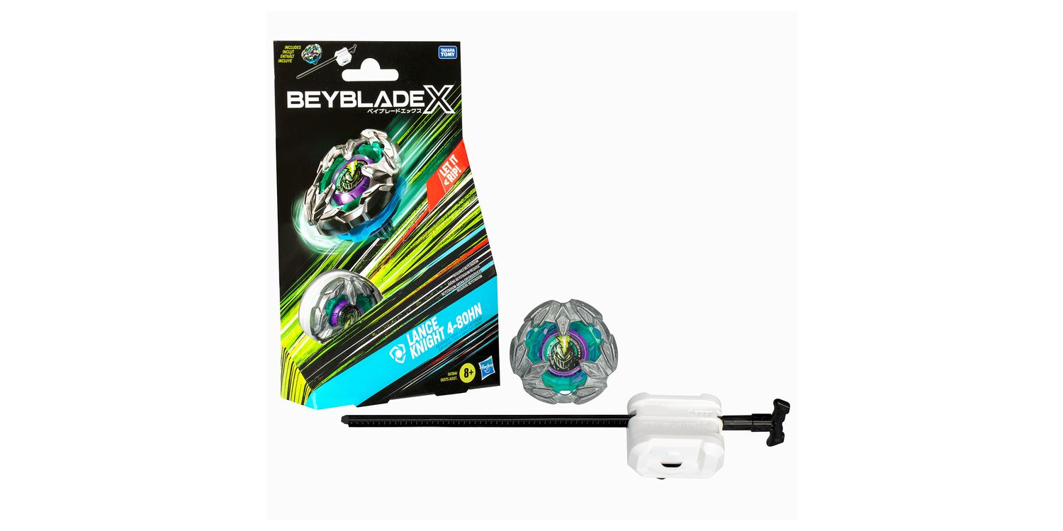 Experience the thrill of the next generation of Beyblade stadiums, launchers and tops: Beyblade X with the Beyblade X Lance Knight 4- 80HN Starter Pack which includes 1 right-spinning Defense Type top and launcher (Beystadium required, sold separately). Launch right into battle or reconfigure the interchangeable blade, ratchet, and bit of this Starter Pack with those of other Beyblade X tops (sold separately) to create your own unsurpassable Bey. Beyblade X features the X-Celerator Gear System innovation to level-up your game. When the gear of a Beyblade X top engages the rail of the Beystadium arena, it can super-accelerate into an Xtreme Dash rocketing it around the stadium for crushing collisions and epic bursts. Bladers launch their tops into fierce clashes against their opponent’s scoring points with each confrontation – first to score 4 points wins. Hasbro Beyblade toys with authentic Takara Tomy diecast metal tops make great kids gifts for boys and girls ages 8 and up.