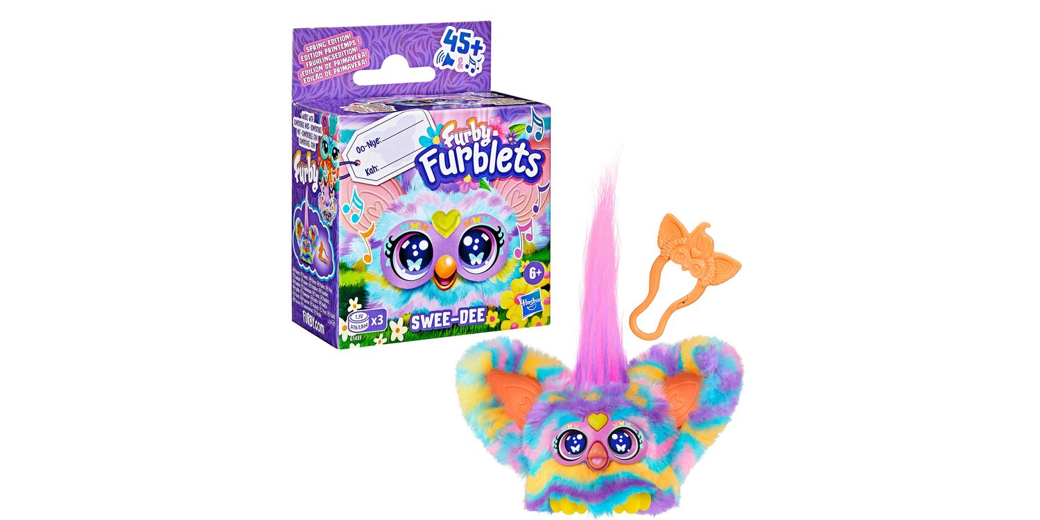 When spring is in the air, the Furblets are here to bring some flair! Swee-Dee looks like a fuzzy little Easter egg for springtime cheer. Explore a variety of over 45 fun sound effects and music with this mini Furby electronic toy for girls and boys 6 years and up. It's a talking toys that only speaks the unique language called Furbish (they don't speak human languages). Clip Swee-Dee to a backpack or other travel bag with the keychain clip to bring the Furblets party anywhere you go. From Easter basket toys and bunny presents to small gifts for kids, this little "noo-lah" (friend) is ready to hop into your heart!