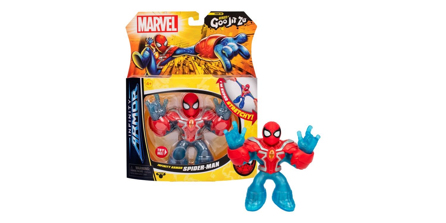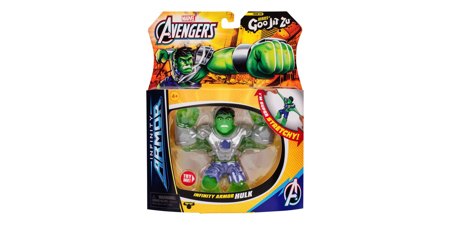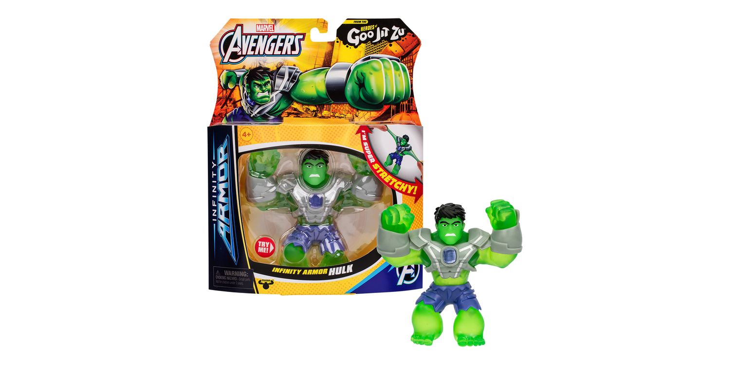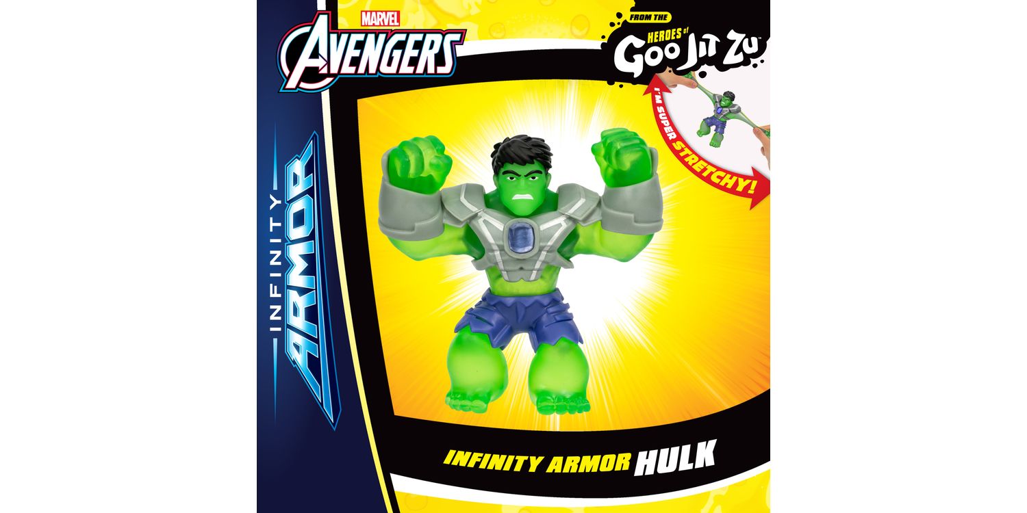Collect all 4.5-Inch / 11.4 CM Marvel Heroes including Infinity Armor Spider-Man and Infinity Armor Hulk. Play with your favourite Marvel Super Heroes in an awesome GOOEY way and with NO mess! Kids will love to squeeze, squish and stretch their arms, legs and bodies of these incredible toys! Their amazing stretchy bodies can stretch out and then return to their original shape! Discover a new way to play and save the day with these cool collectible Infinity Armor Marvel Heroes of Goo Jit Zu! Collect them all!