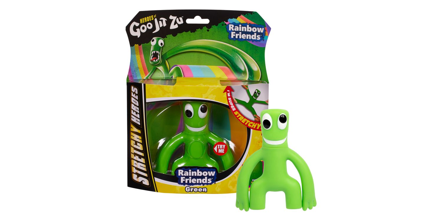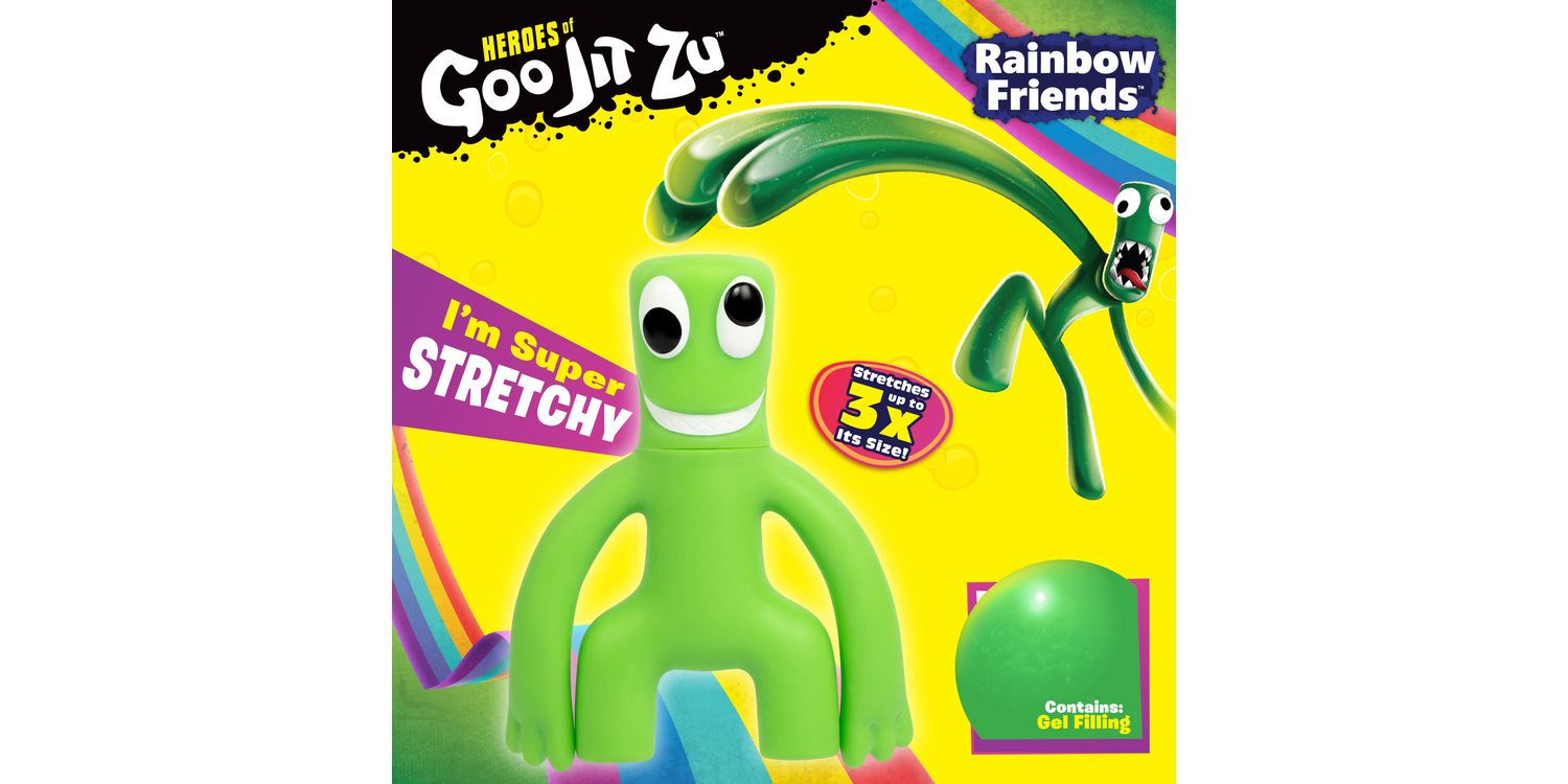 Rainbow Friends, the multiplayer, kid-friendly horror story experience have now joined with the Heroes of Goo Jit Zu to become super squishy, stretchy action figure toys! Fans can collect both Blue and Green 4.2-Inch character figures. They have unique goo fillings! Blue is super squishy. Kids can stretch and squeeze his unique squishy, water-bead filled body and see something fantastic happen! Green is super stretchy and loves using his long stretchy, goo-filled arms to find his friends when playing hide and seek. Give his body a squeeze to reveal his gooey nature. Boys and girls can stretch both Blue and Green up to three times their size. Best thing is they will always come back to their original shape! Heroes of Goo Jit Zu Rainbow Friends are a gooey way for kids to play with no mess.