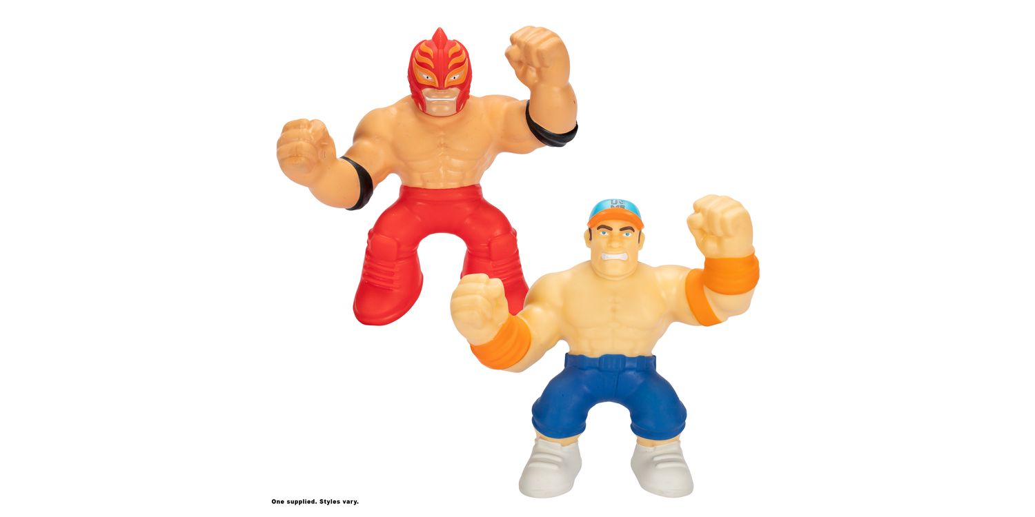 WWE and the Heroes of Goo Jit Zu have combined forces to bring you some of the best and the baddest WWE Superstars to ever enter the ring! Introducing Heroes of Goo Jit Zu Stretchy Superstars! The ultimate line-up of the stretchiest, gooiest and squishiest WWE figures ever! These Goo Jit Zu WWE figures can stretch, twist and squish their unique "Superstar Gel" filling and move in a way like they never have before! Kids can play with their WWE figures in a new GOOEY way - with NO mess! Squeeze, squish and stretch their arms, legs and bodies! Their amazing stretchy bodies can stretch up to 3 times their size and then return to their original shape and size! Kids will discover a new way to play with these stretchy 4.5-Inch tall collectible toy wrestlers! Some of your child's favourite WWE Superstars are here to collect including John Cena, Rey Mysterio, Roman Reigns and Cody Rhodes. Collect all the Heroes of Goo Jit Zu WWE Stretchy Superstars and prepare for some goo filled fun!