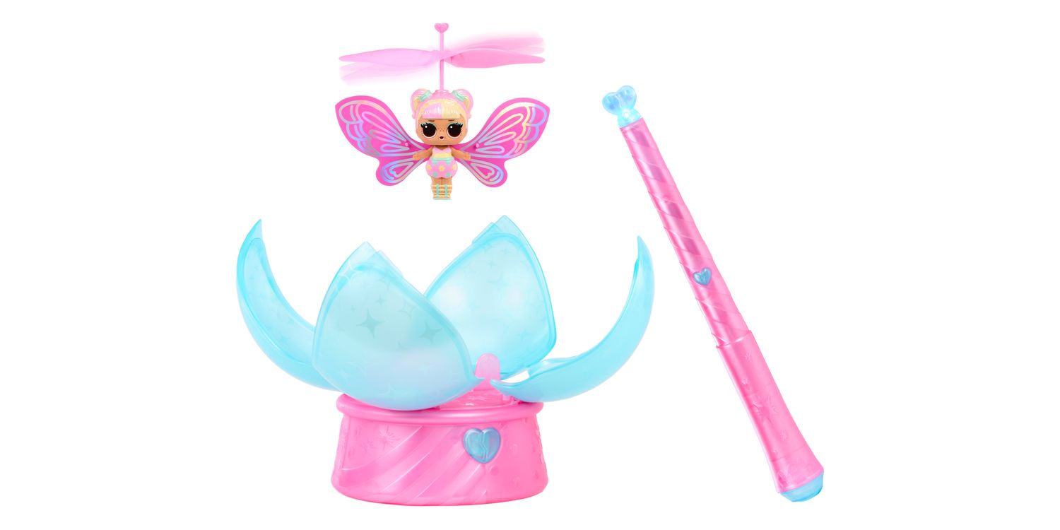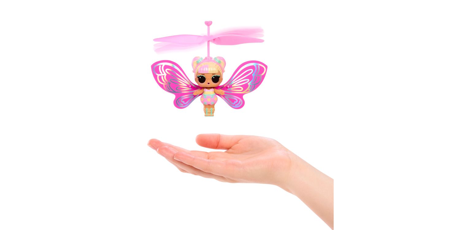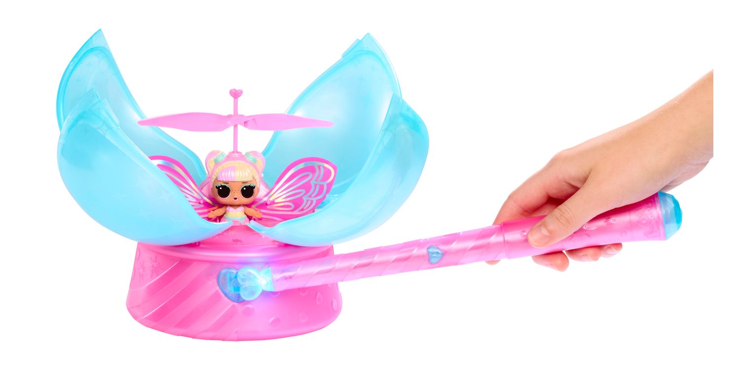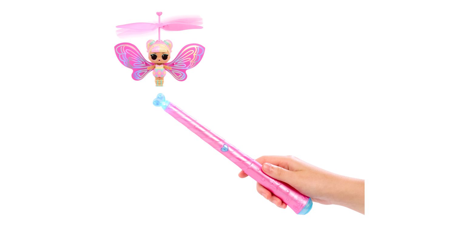 Get ready to meet our Magic Flyers Fairies Tots! These Magic Flyers Fairies will fly out of a magic blossoming flower-shaped package, and you can guide them up-and-down with an included magic wand!