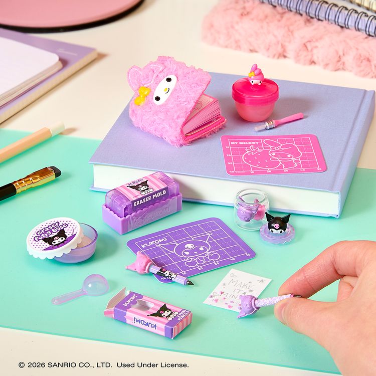 Create your favourite Sanrio® retro stationery - in mini form! Each ball comes with realistic mini stationery themed items to make. From Kuromi shaped erasers, to a Cinamoroll notebook, to a Keroppi themed stationery set with storage, the fun is in the mystery! There are 8 to collect in this series! Check the collector's guide to discover which Hello Kitty and Friends mini stationery you’ve unwrapped. Then, follow the instruction card to create your mini collectible set. Each ball turns into a Hello Kitty and Friends display case, perfect for showcasing your creation!