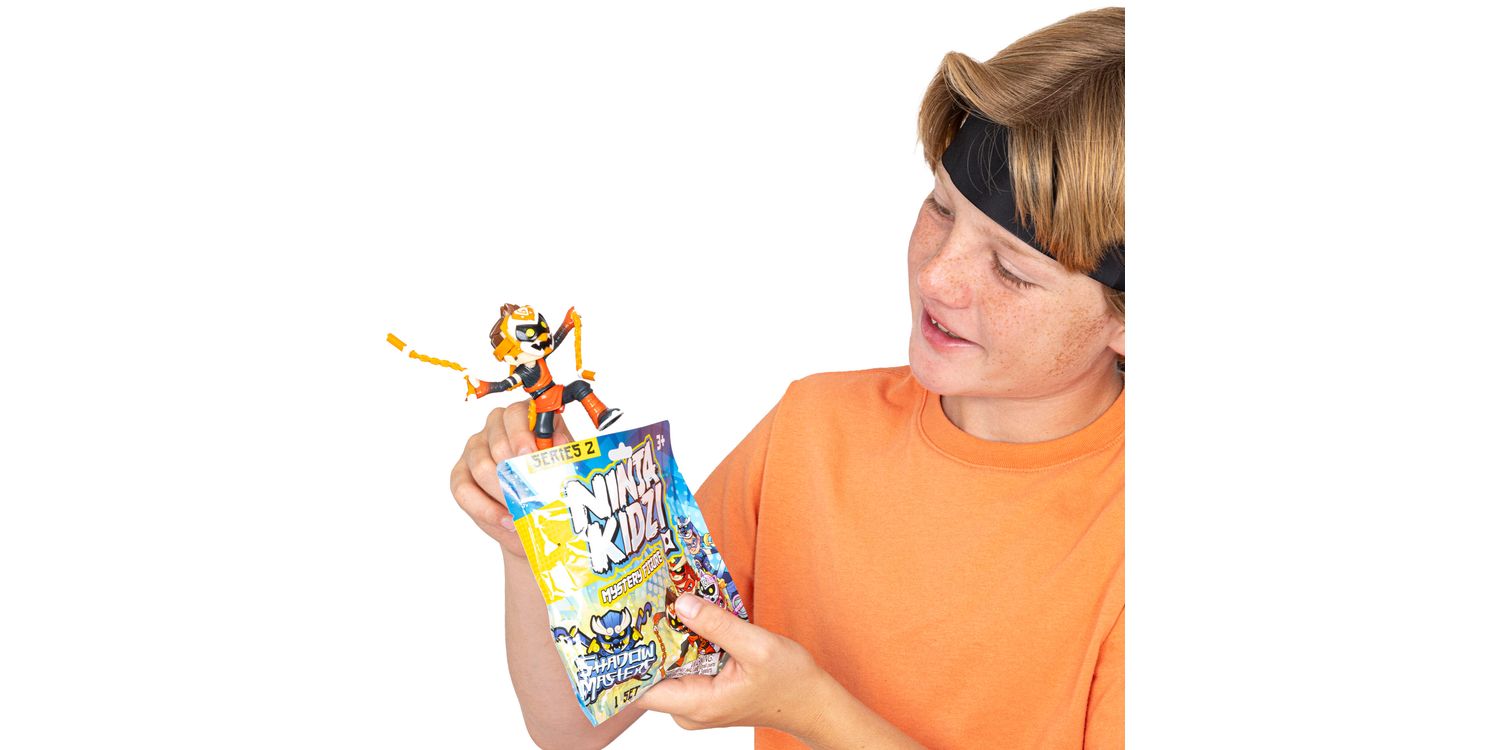 It features a mix of episodic adventures, villain battles, action skits, ninja challenges and more. Now, fans can bring home collectible toy versions of the Ninja Kidz Family that capture all the action from their videos! Each Mystery Figure blind bag contains 1 Mystery Ninja Kidz Figure plus removable mask and accessory, with 8 unique characters to collect in the full assortment. The Shadow Masters collection features the Ninja Kidz & their Stealth alter-egos, where fans will surely want to collect them all!