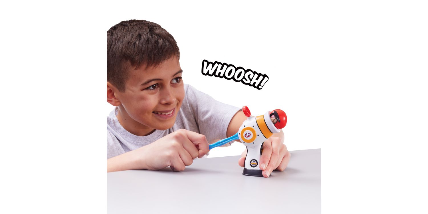 TWO WAYS TO FIRE This cannon boasts TWO yes TWO! ways to fire - hold it down on the deck and shoot, or just quick fire from the hip. Fire Stu at a neck snapping speed out of the cannon!