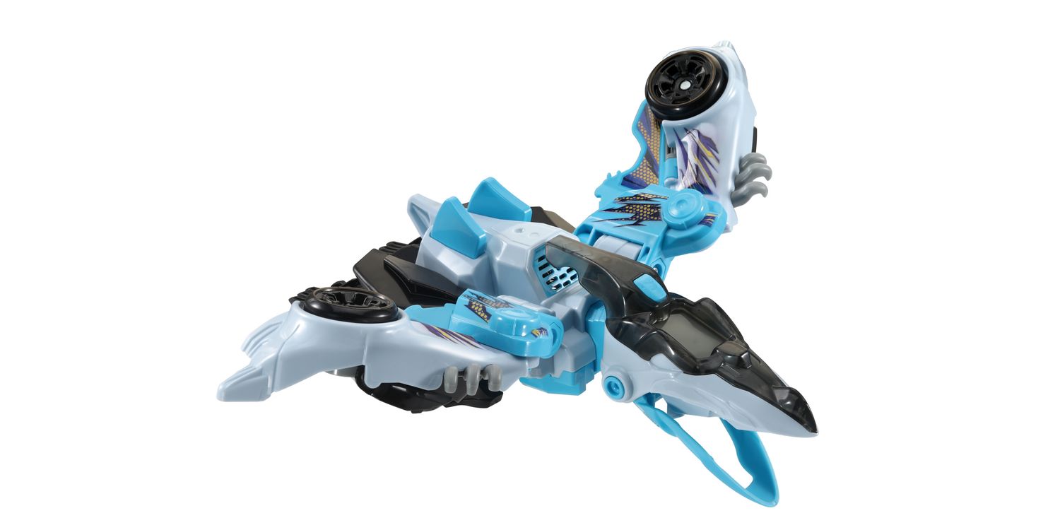 2-in-1! Introducing Talon the Pterodactyl by VTech®! Easily switch this Switch & Go Dino® between a fast super car and soaring Pterodactyl in just a few simple steps! Plays lively Pterodactyl & vehicle sound effects, fun phrases and Pterodactyl facts! See cool dino eye and driver animations on the backlit LCD screen! Press the action button to see Pterodactyl’s wings flap and head bob! Dino mouth opens and projects lights! Let's Switch & Go!