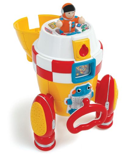 Ronnie Rocket Space Rocket toy is out of this world! Pull Ronnie’s cord to start the countdown! His window numbers go from 5 to 1 while Ronnie shudders and shakes as he approaches blast-off. Push the WOW button to open the cockpit, then place his Astronaut Play Friend inside to send Ronnie flying into orbit on a daring space mission! Suitable for ages 1 and up.