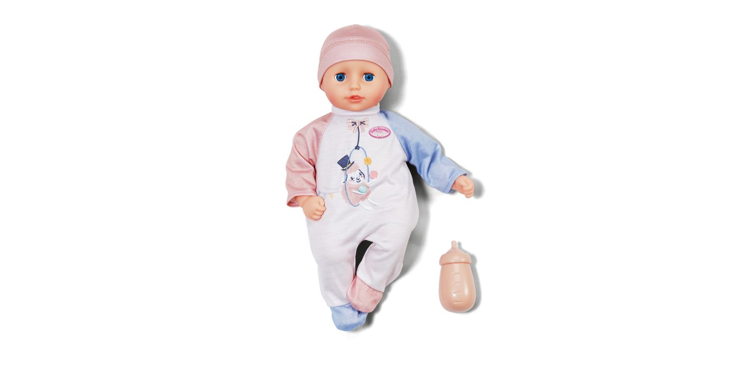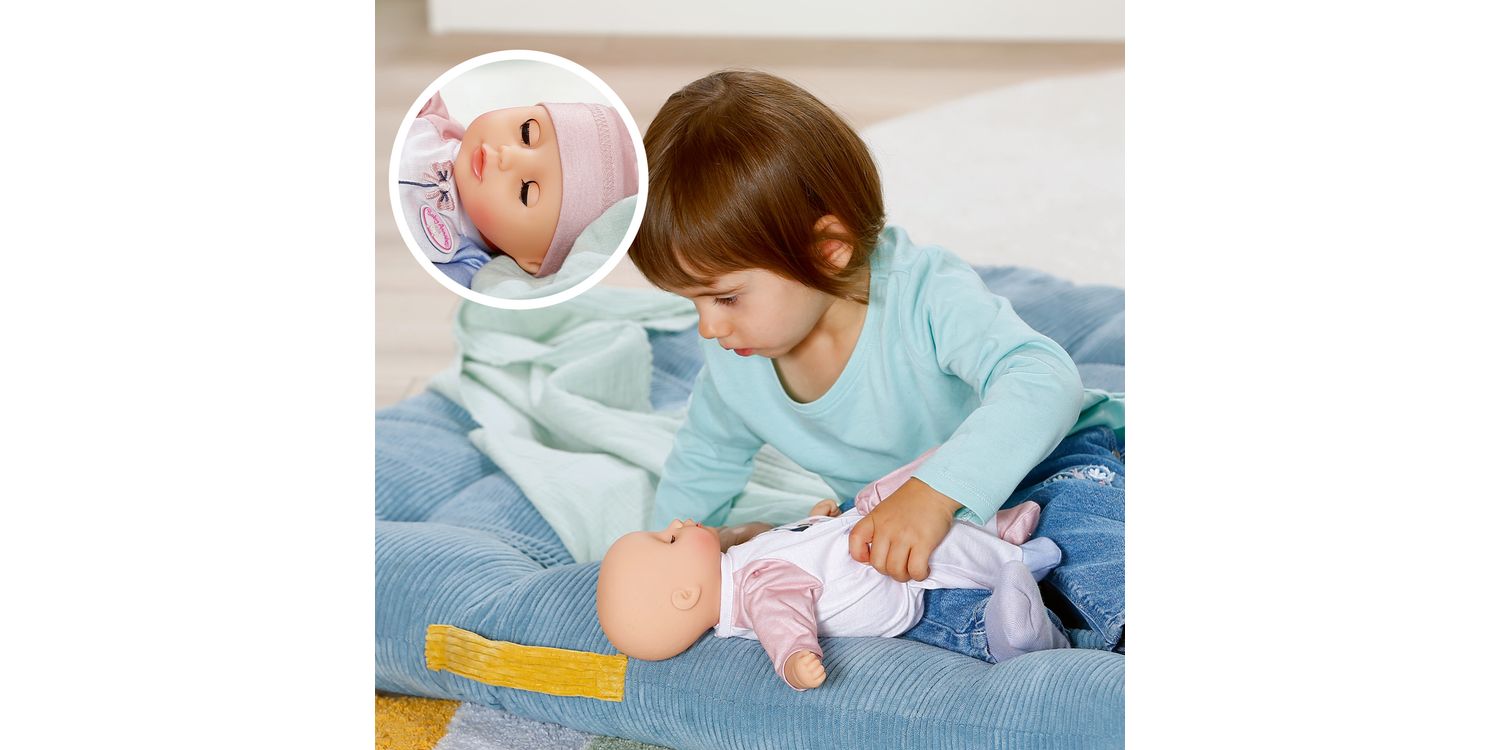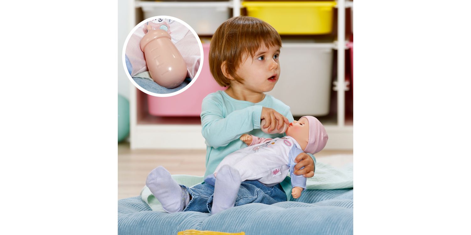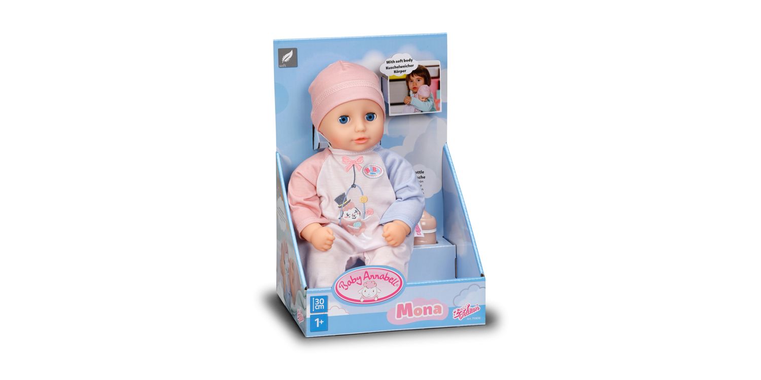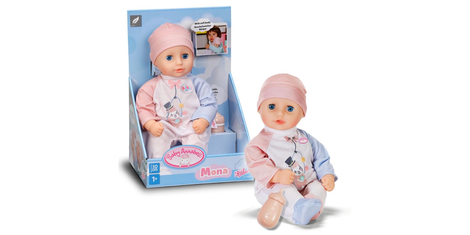 The perfect first doll for young children Baby Annabell Mona comes with a miniature bottle for pretend feeding and has sleeping eyes when you lie her down.