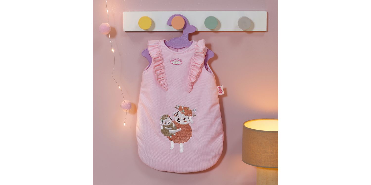 Keep Baby Annabell warm and snug with the Baby Annabell Sleeping Bag. Featuring an adorable sheep embroidery design, frill trim and easy-to-use fasteners.