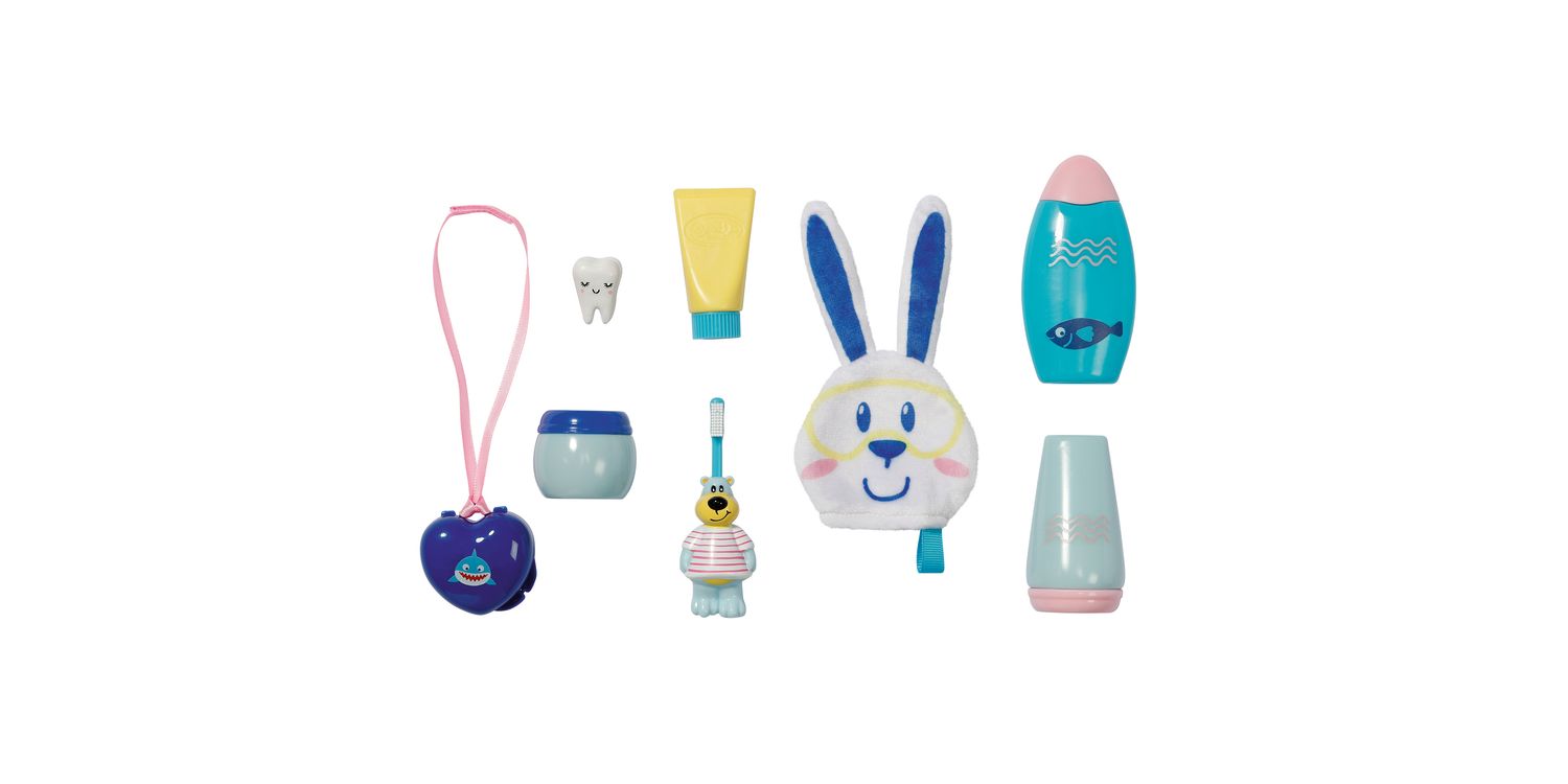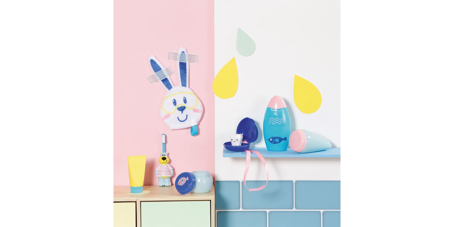 BABY born loves bath time and this Bath Fun Set is the ideal accessory to support bath time play. With 8 different accessories, little ones can use their imagination as they role play bath time routines with their favourite doll. Including a little bunny shaped wash cloth for getting BABY born clean, pretend shampoo and cream bottles, there’s even a bear shaped toothbrush! Plus, did BABY born lose a tooth? There’s a little tooth and tooth box ready for the tooth fairy to collect!