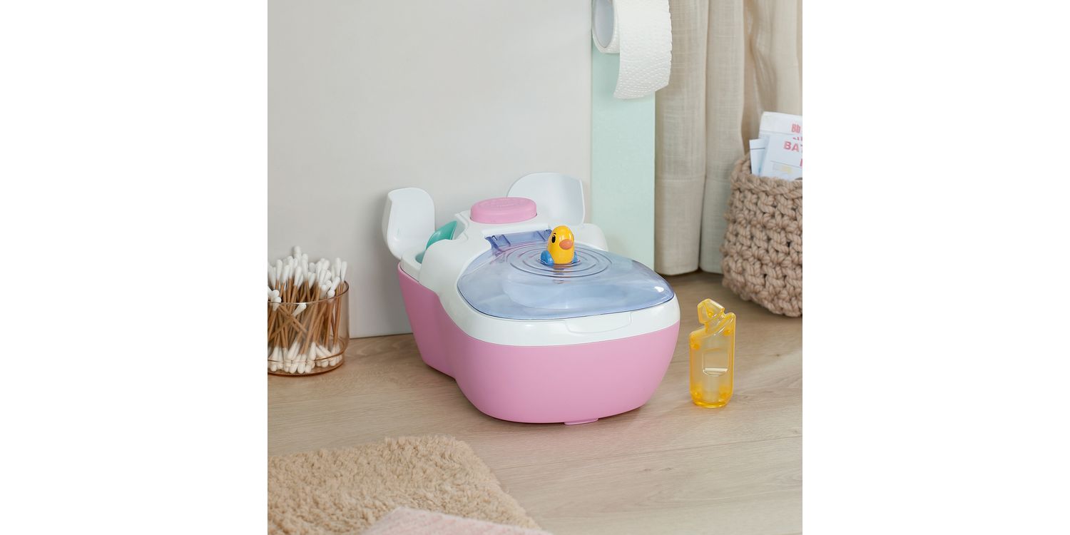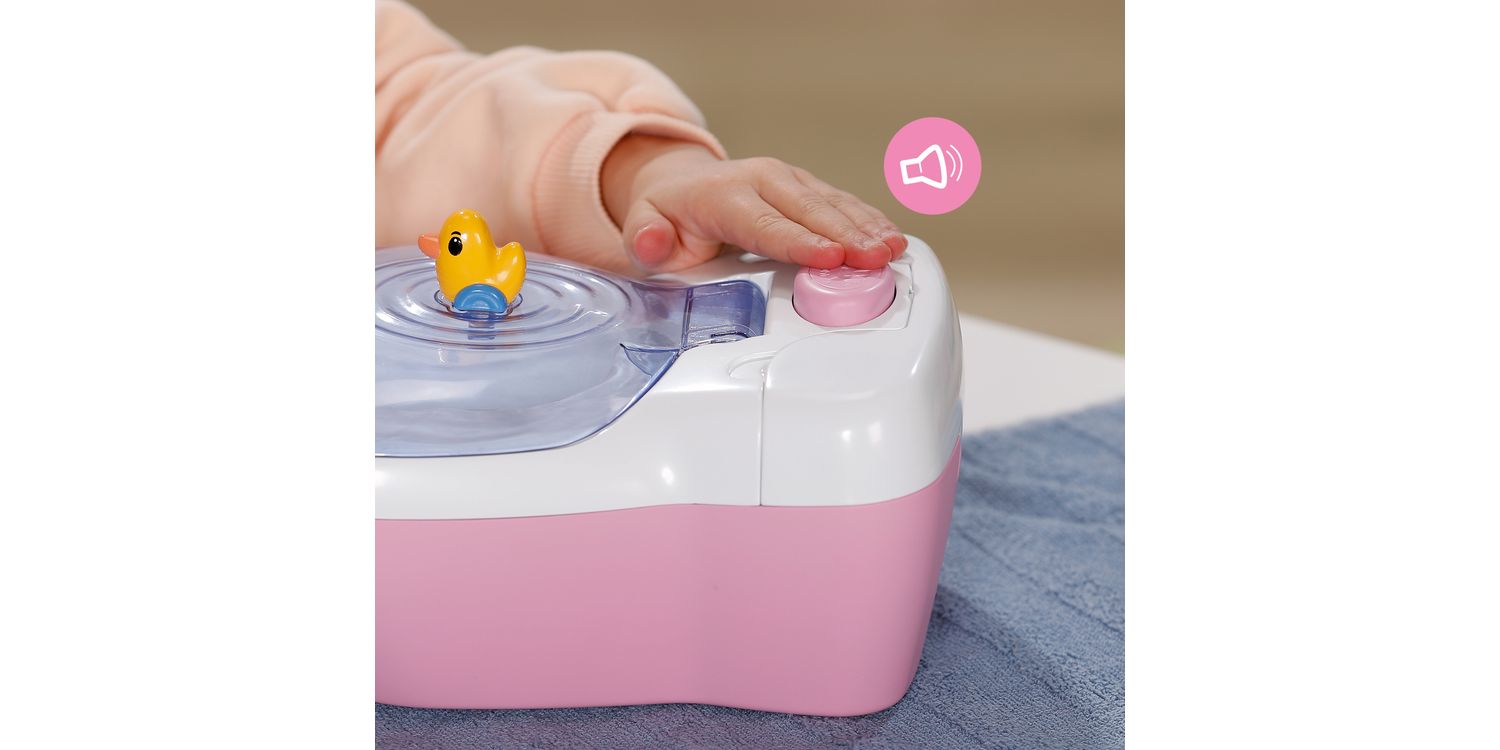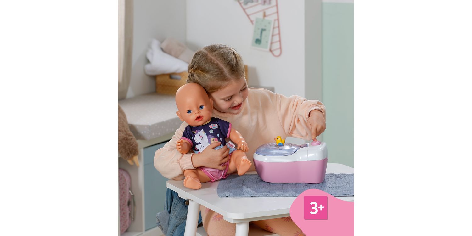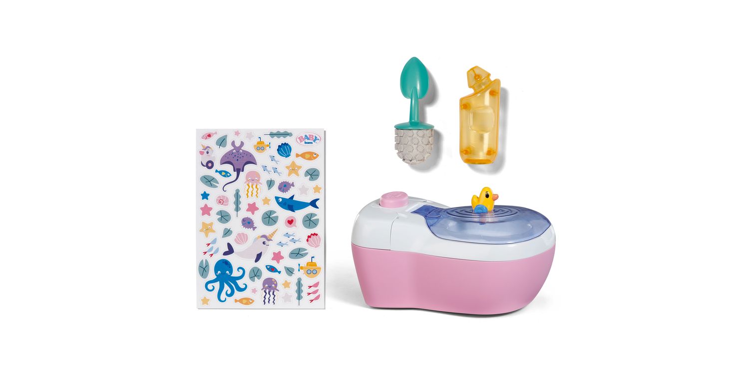 BABY born doll toilet with funny sounds, music and water-reveal feature. Includes matching cleaning accessories and a fun sticker sheet.