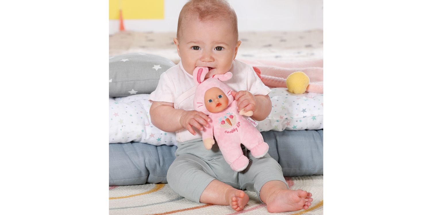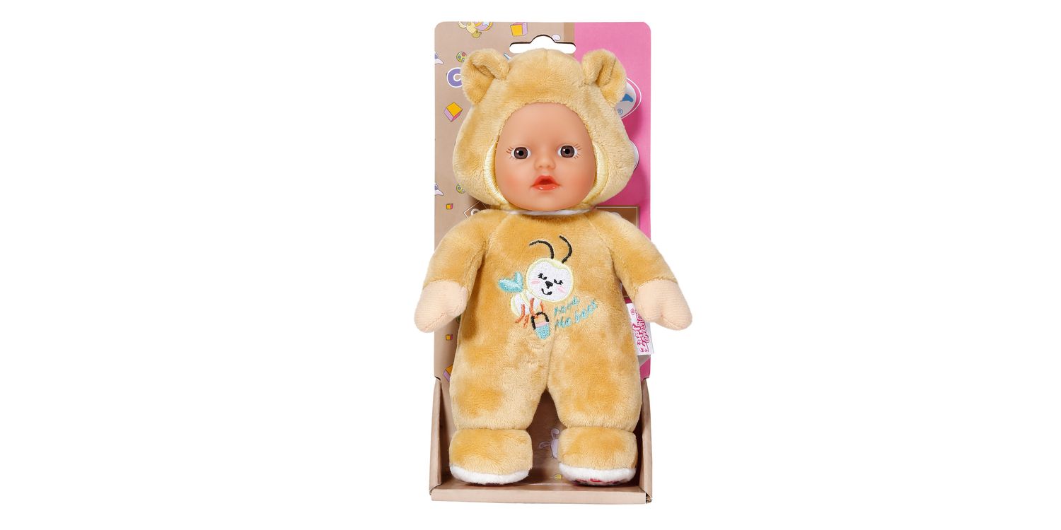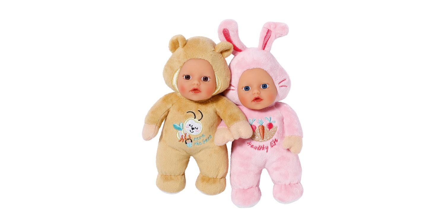 With their adorable animal themed onesies, BABY born Cutie for babies are the sweetest little dolls, designed especially for babies. In two styles that you can gift, Cutie for babies come in either a light pink bunny design, or a little brown bear design, both with fluffy animal ears and cute button tails! There’s a lovely decorative graphic on each of their tummies and their super-soft bodies are great for cuddles all day long. In case of any spills or dribbles, the Cutie for babies’ dolls can be hand washed and come with minimal stitching so outfits cannot be removed. Comes in two assorted styles, bear and bunny, both sold separately. Unfortunately, it is not possible to request which doll you would prefer.