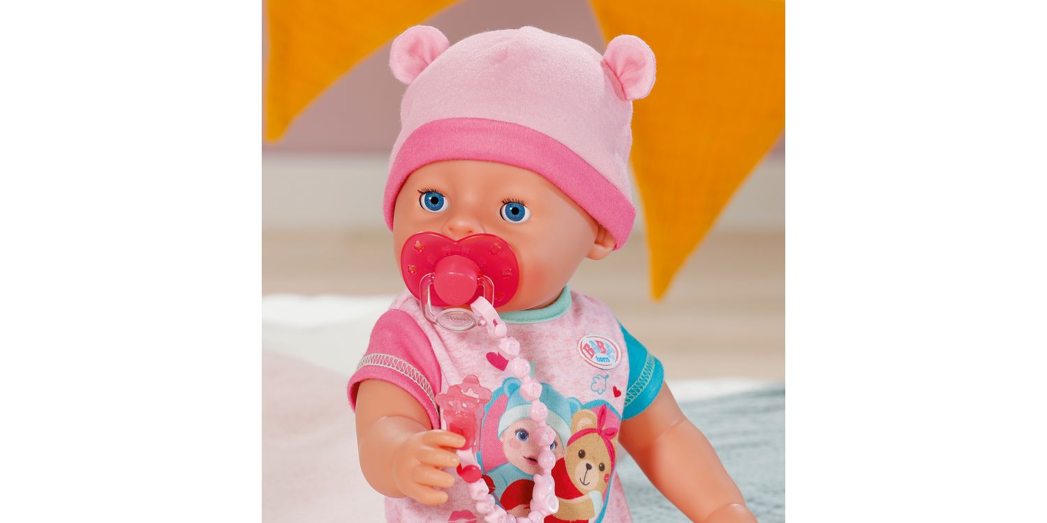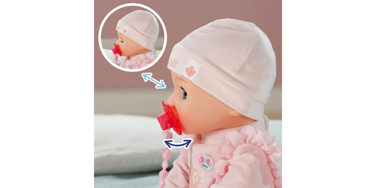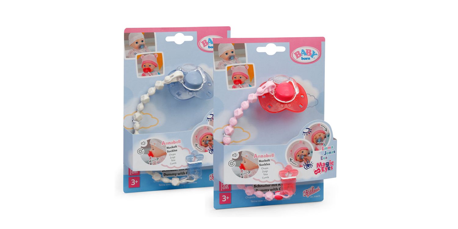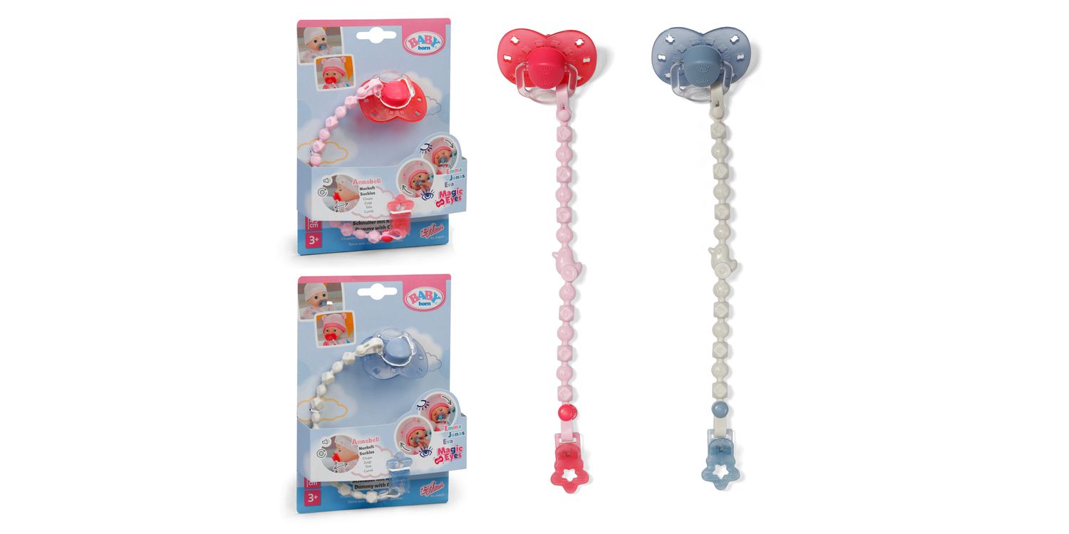 A fun addition for nurturing play, the BABY born Dummy with Clip works with BABY born and Baby Annabell 43cm dolls. Baby Annabell, Leah and Alexander make sucking movements and sounds when using the dummy whilst Emma, Eva and Jonas will close their eyes when you turn the dummy in their mouth.