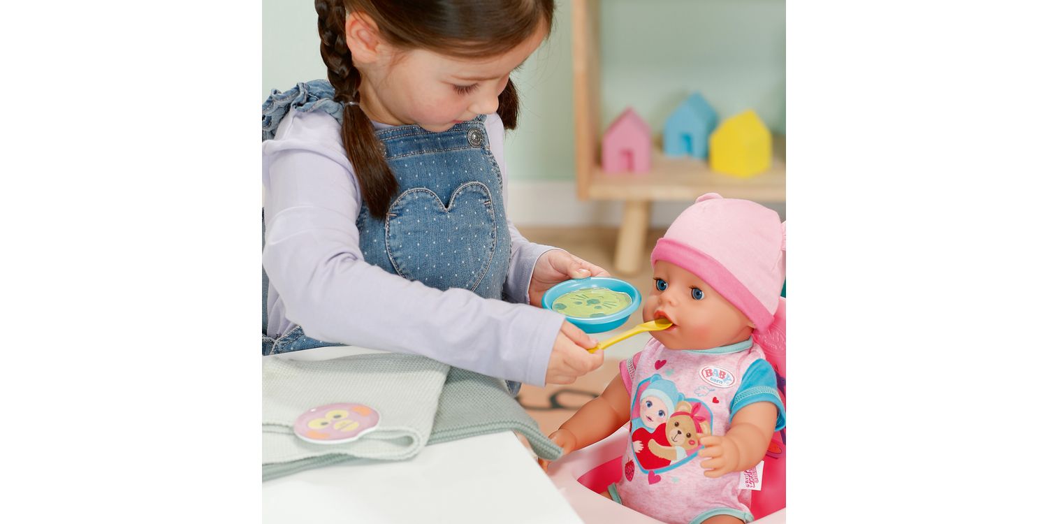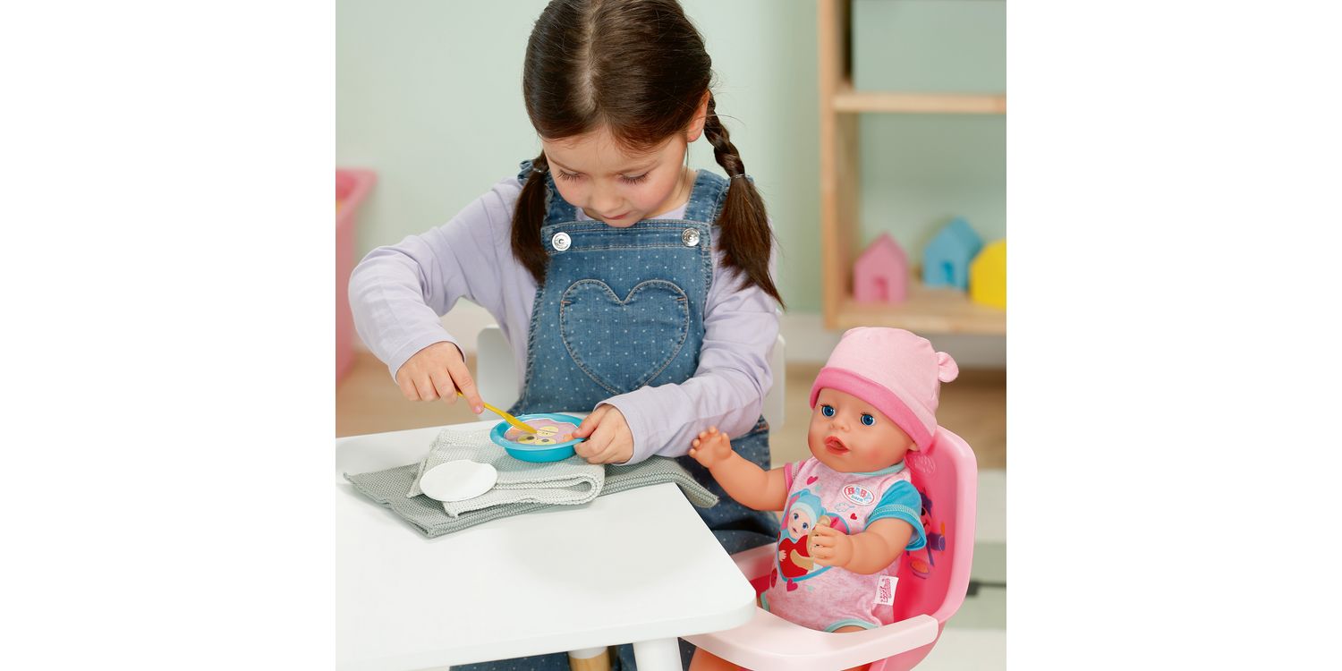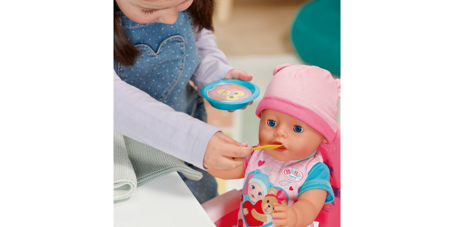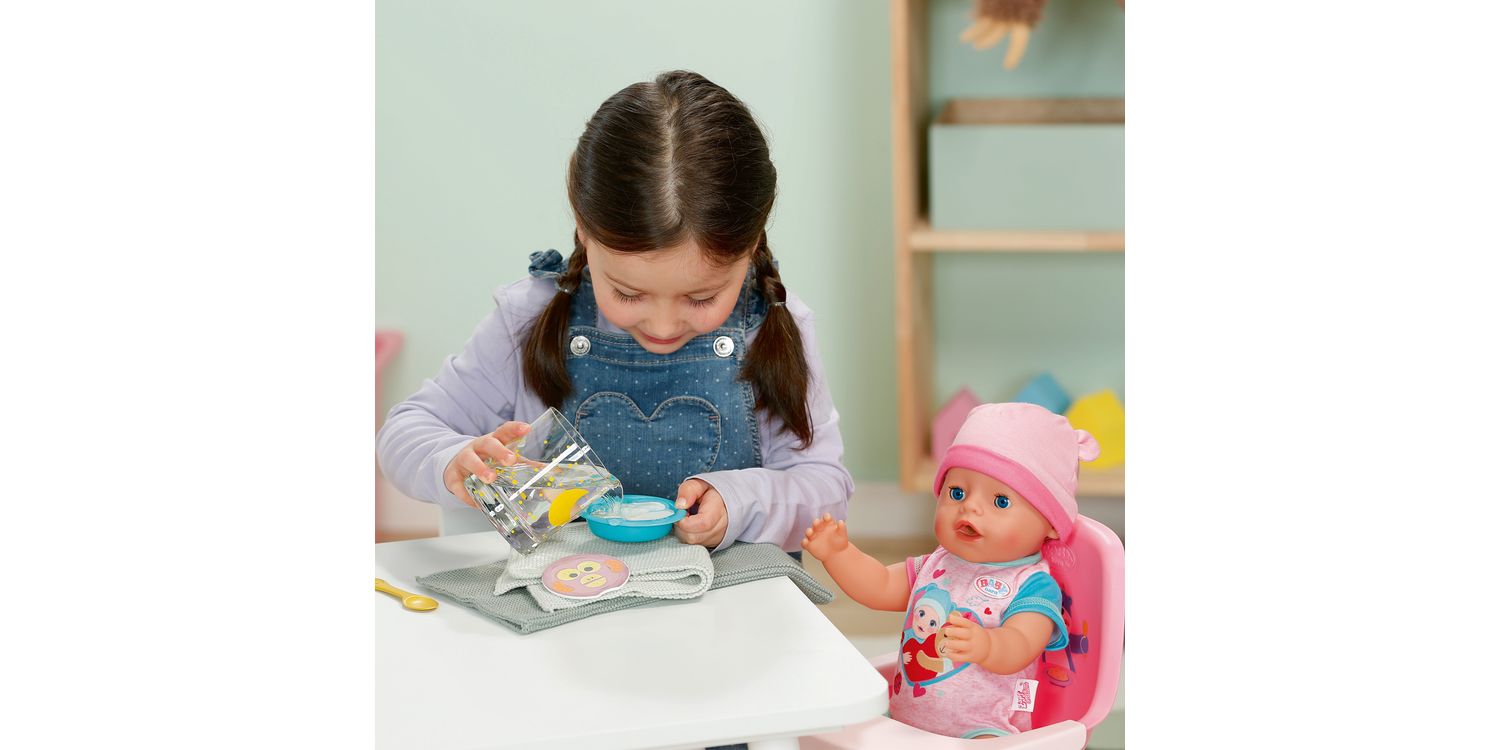 Bring more variety to lunchtimes with the BABY born Feeding Set. Place insert in the bowl and just add water to magically reveal a fun meal! Image disappears when plate dries, ready for next time.