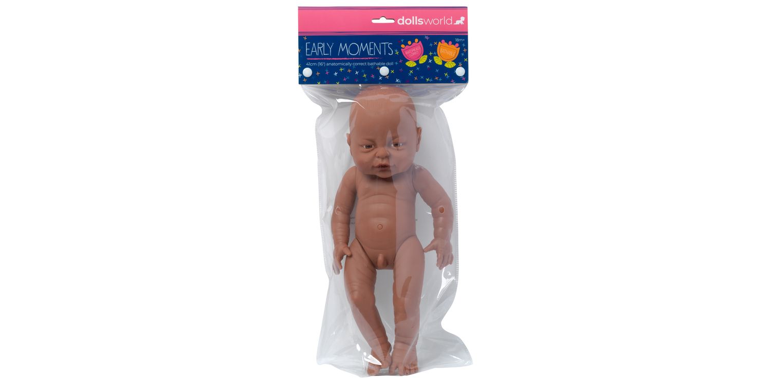 IT’S A DOLLSWORLD: The DOLLSWORLD range has been delighting little ones for more than 30 years! Each doll provides a life-like role-play experience, encouraging caring and nurturing skills, social interaction and empathy. EARLY MOMENTS: A 41cm (16") fully jointed, bathe able doll that can help teach children about their bodies. EDUCATIONAL LEARNING: The DOLLWORLD Early Moments Dolls provide an interactive and educational way for children to learn about the human body. BATHTIME BONDING: The Early Moments Doll is fully bathe able encouraging little ones to care and nurture through role play. PERFECT FOR TODDLERS: