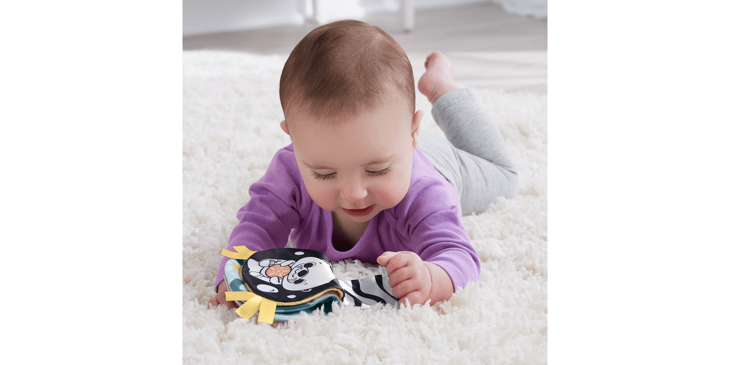 The “otter-ly” adorable 2-in-1 Rockin' Tummy Time Otter plush sensory toy from Fisher-Price® grows with your baby from tummy time to sit at play. The otter comes with a soft book that features high contrast colours plus a self-discovery mirror and crinkle panel to stimulate baby’s developing senses. During tummy time, position the book’s mirror on the otter’s back for baby to see themselves. When your baby begins to sit up, the otter transitions to become a fun roly-poly toy that rocks back and forth and makes a fun jingle when baby bats play. Both the book and otter are perfect size for on the go fun too!