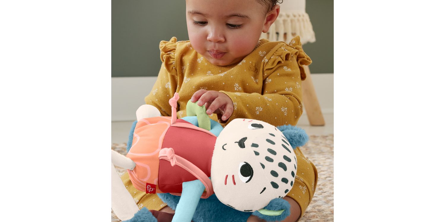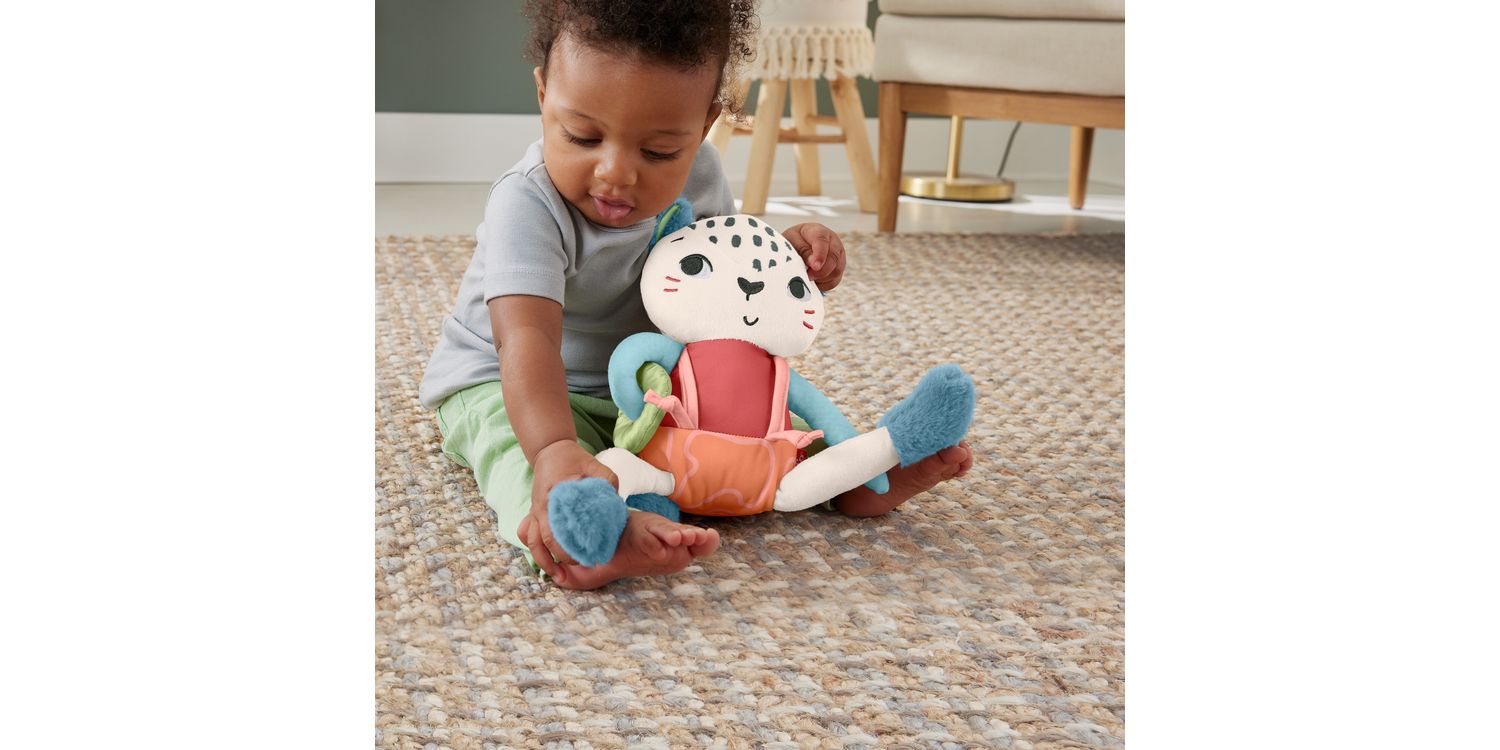 Inspired by animals that are endangered or vulnerable, the Planet Friends Spotting Fun Snow Leopard baby sensory toy from Fisher-Price uses fabric made 95% post-consumer recycled plastics and comes in packaging made with FSC®-certified paper to support responsible forestry. This plush toy features satiny fabrics, soft fuzzy crinkle boots and high-contrast colours to engage your baby’s senses. Fun fine motor activities include pull-through legs, a slide-off suspender and a soft sliding arm ring for your little one to discover. This toy can also help provide a sense of security for your baby at home or when traveling and is machine washable. (FSC C172210, 2021)