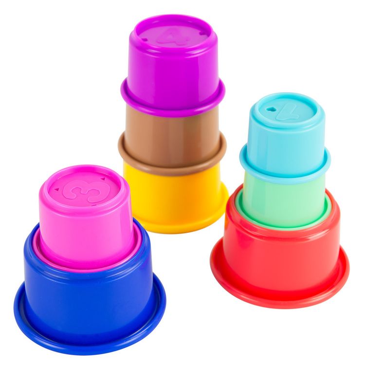 When building baby's toy collection, start with the classics! Nesting cups are popular for a reason, offering simple-yet-fun ways to play. Children love to fit them together, stack them up, or turn them over and hide things underneath. These eight colourful cups have large numbers embossed on the base so an older child can practice counting and begin building number recognition skills. You can 'count' on hours of fun!