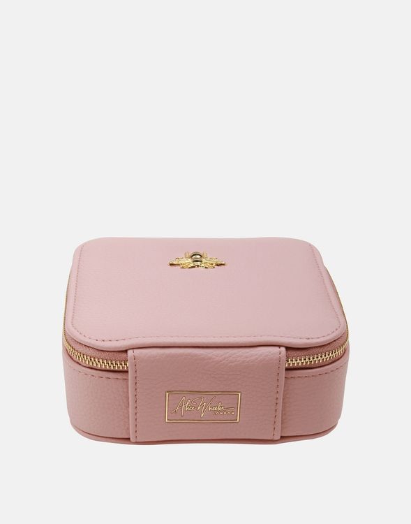 Jewellery / Travel case with Double zip allow lid with mirror insert to fully open, centre compartment holds rings, earrings and small items, whilst two side compartments hold larger items.