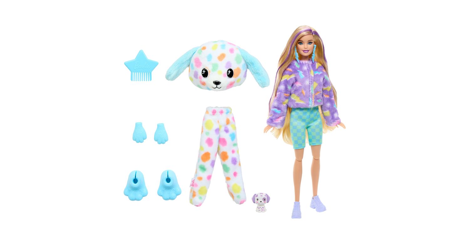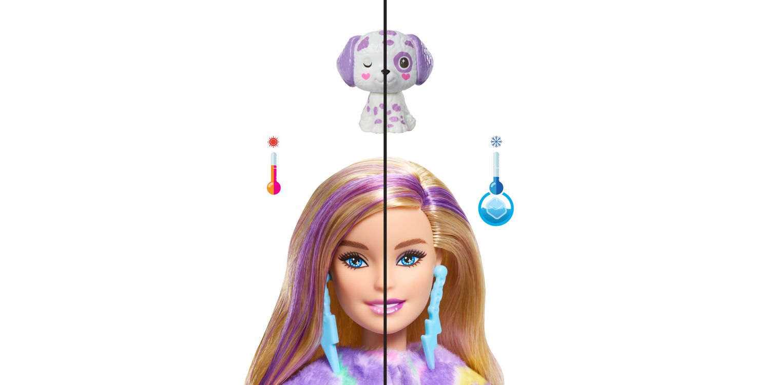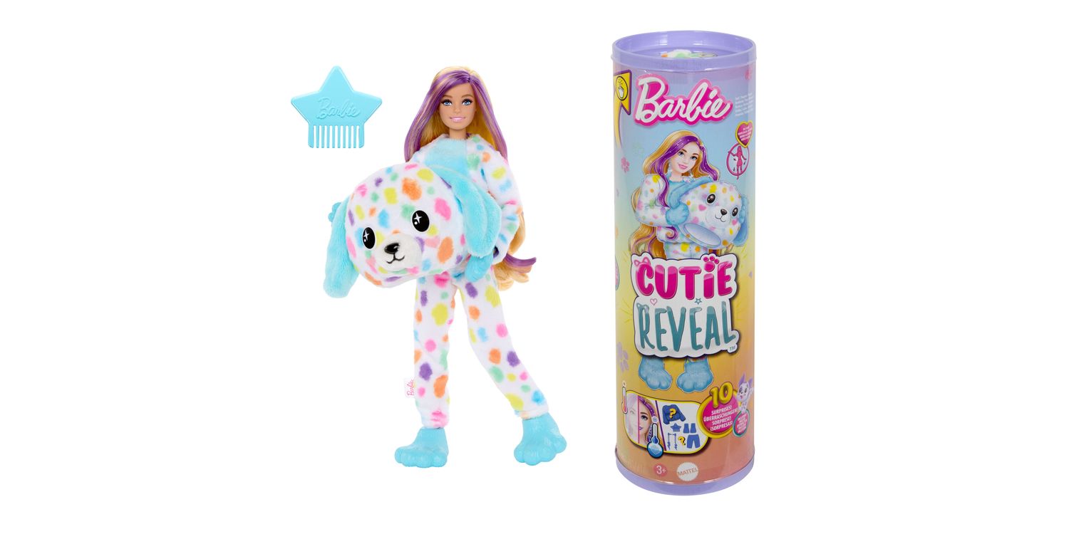 Barbie Cutie Reveal Colour Dream Series dolls offer the cutest unboxing experience with 10 surprises! Which doll will you find? There's a Bunny, Zebra, Penguin or Dalmatian -- transformed from black and white to a dreamy rainbow coloured-pattern on their fur and hiding a fashion doll inside. Remove the plush costume to reveal a posable Barbie doll with long, colourful hair. Discover more surprises to open like a skirt or shorts, a pair of shoes, earrings, a star-shaped comb and a matching mini pet. Reverse the plush top for a fleece jacket and flip the costume head for a pet bed. Icy cold water adds even more cuteness with colour-change transformations on the doll's face and mini pet; warm water changes them back for repeat fun! Kids will love discovering -- and collecting -- all the cute surprises in this adorable Barbie Cutie Reveal Colour Dream Series. Each doll sold separately, subject to availability. Dolls cannot stand alone. Colours and decorations may vary.