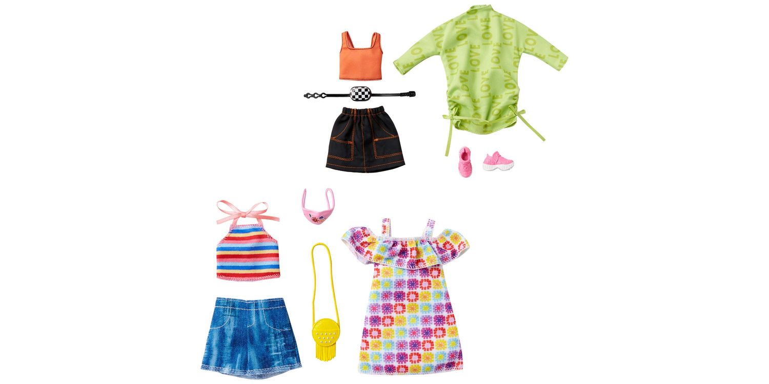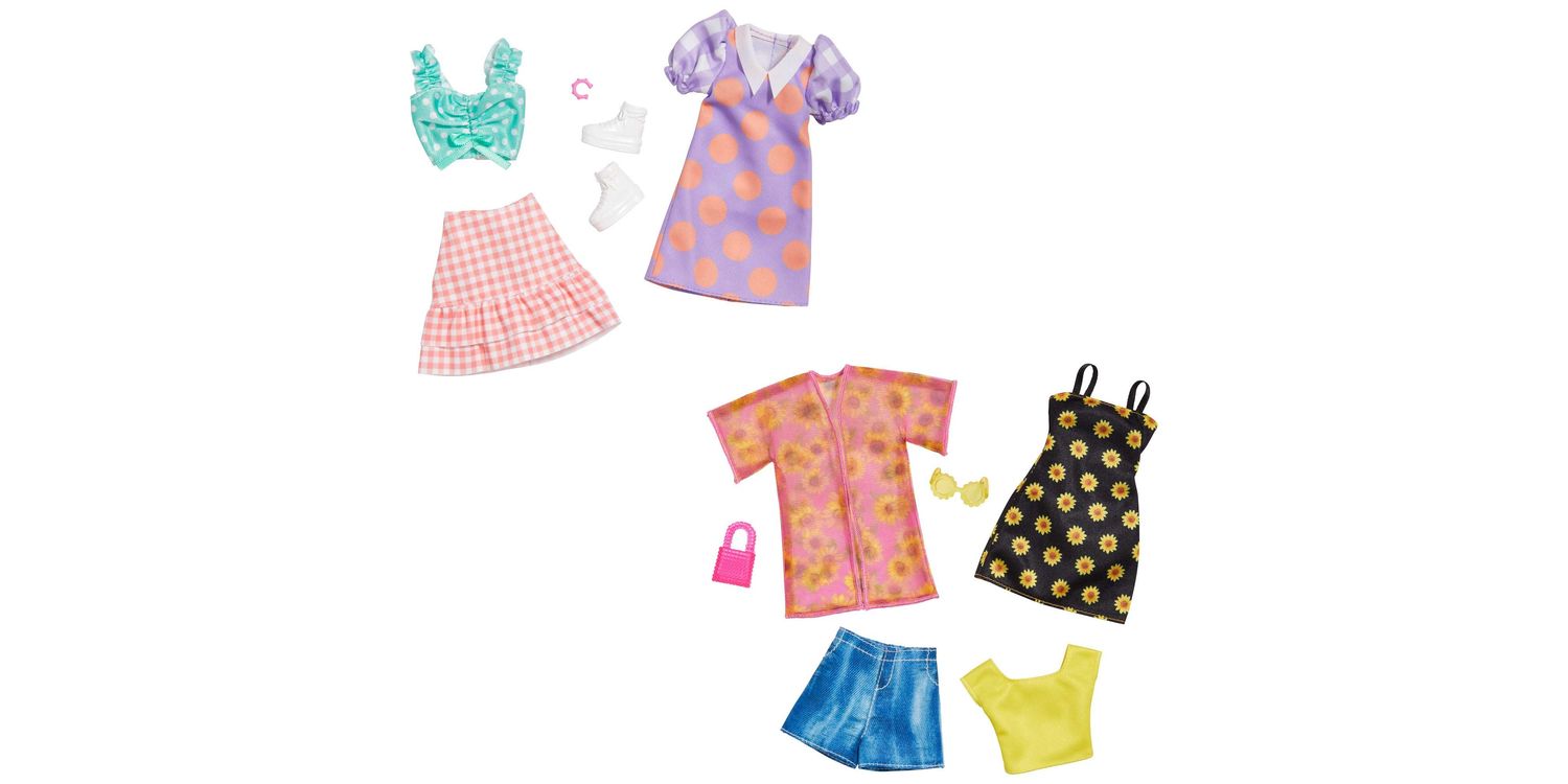 Dress Barbie doll for any challenge with a wardrobe that can keep up! With doll clothes and accessories for two complete outfits in one fashion pack, these Barbie clothing sets offer double the styling fun (doll sold separately).