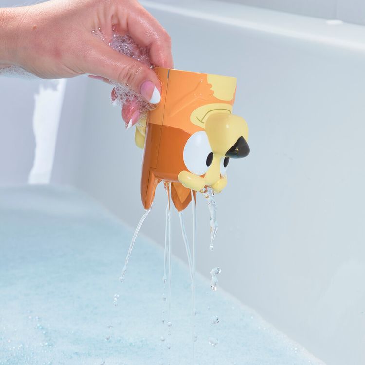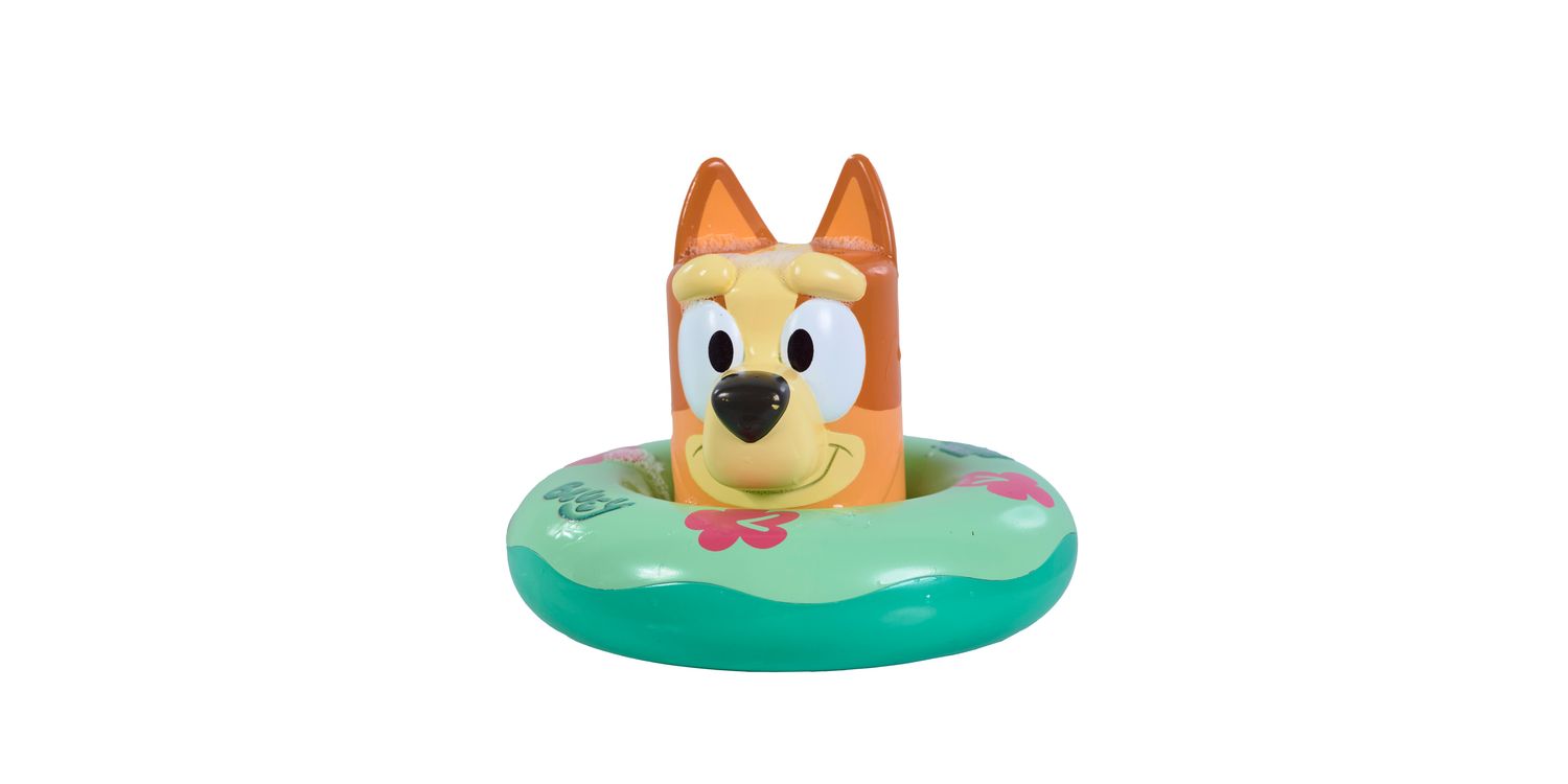 Get little ones excited for bath time with the Bingo Splash and Float bath toy for ages 18 months and up. The Floating Bluey toy bobs around on a colourful pool float - take her off the float to reveal a water wheel ready for water spinning action!