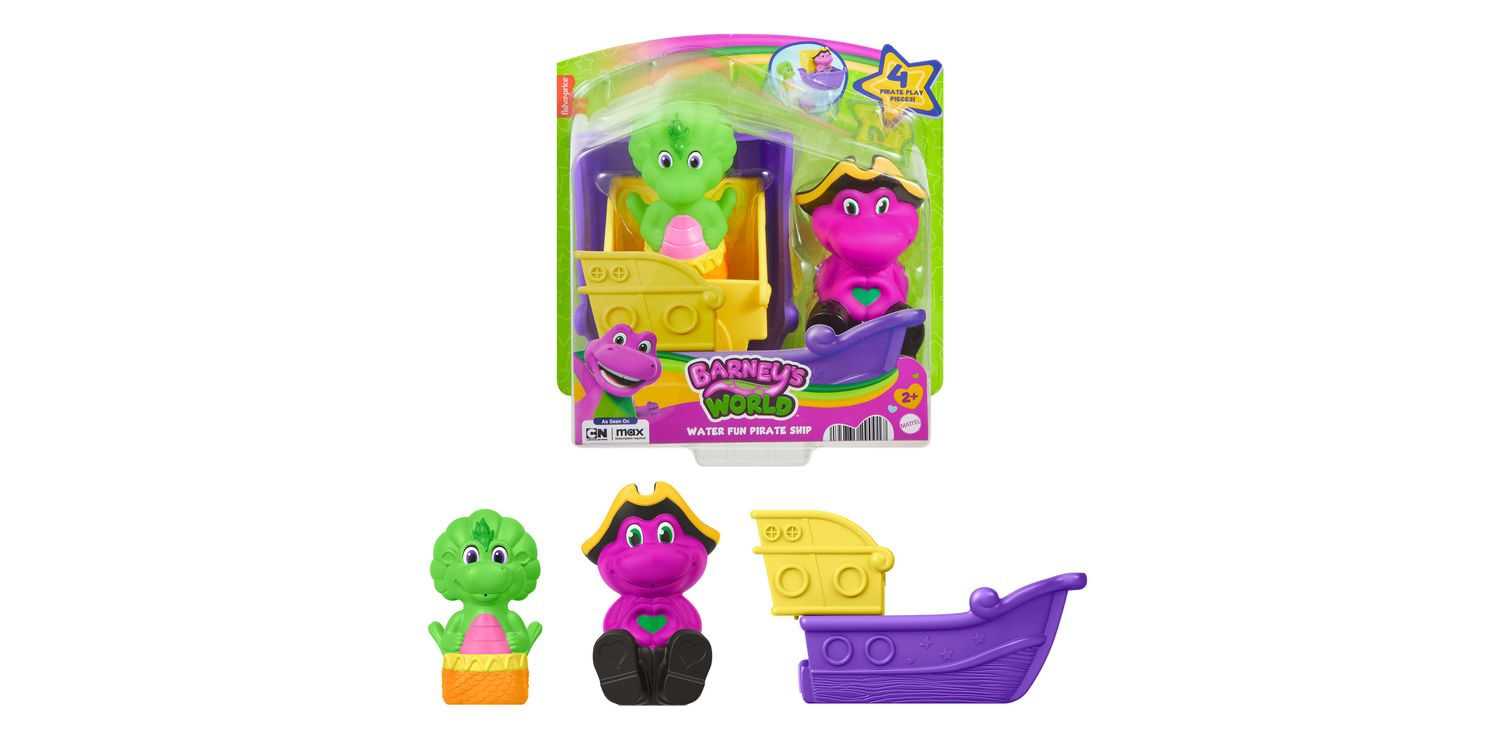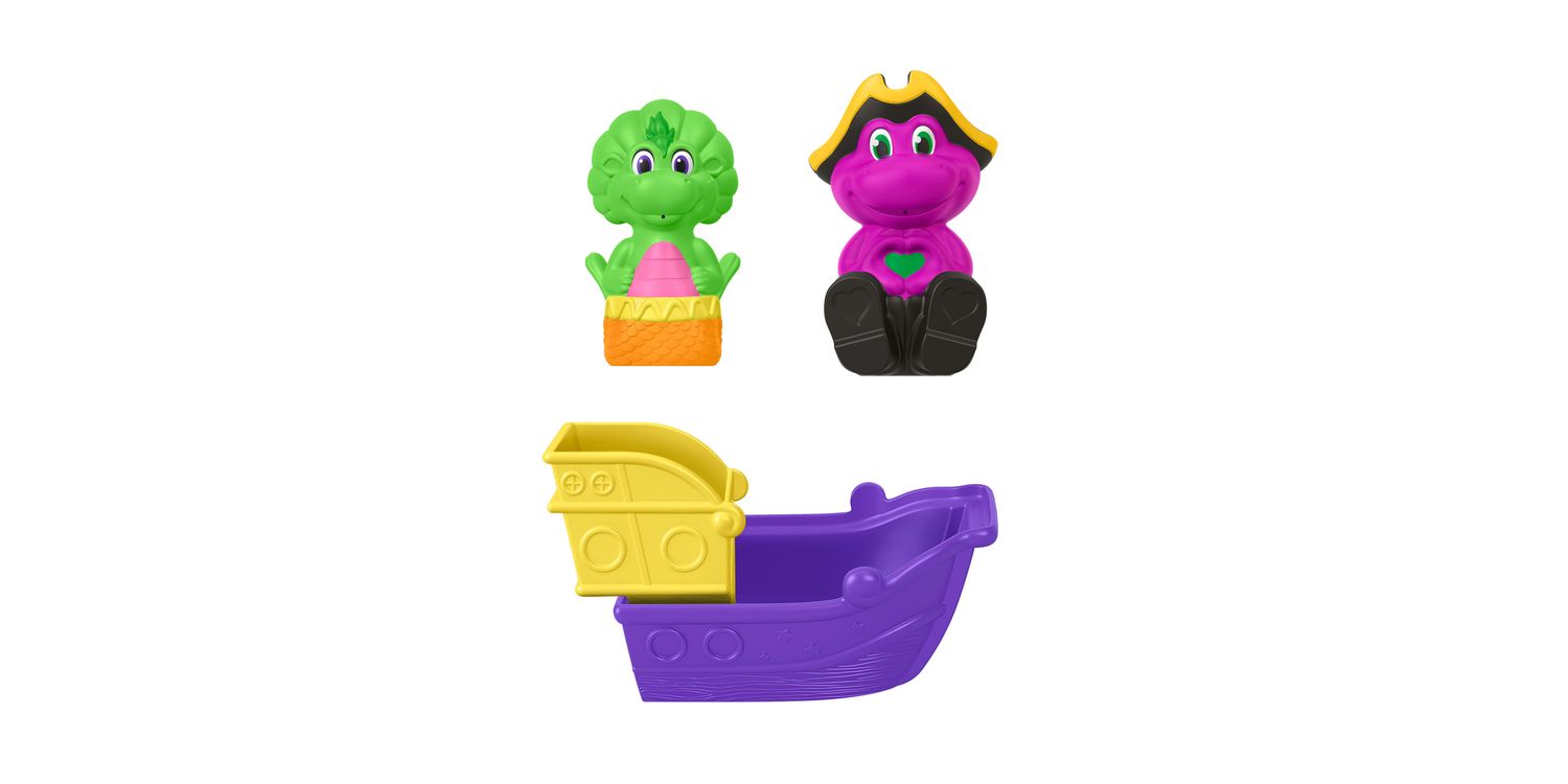 Kids can sail into exciting water play adventures with Barney and this 4-piece pirate ship set from Fisher-Price!