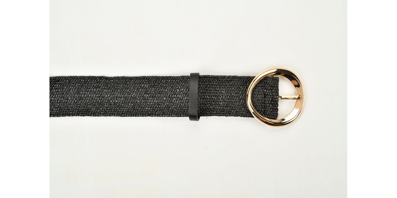 Solis - Rattan Style Stretchy Belt Black with Gold Buckle