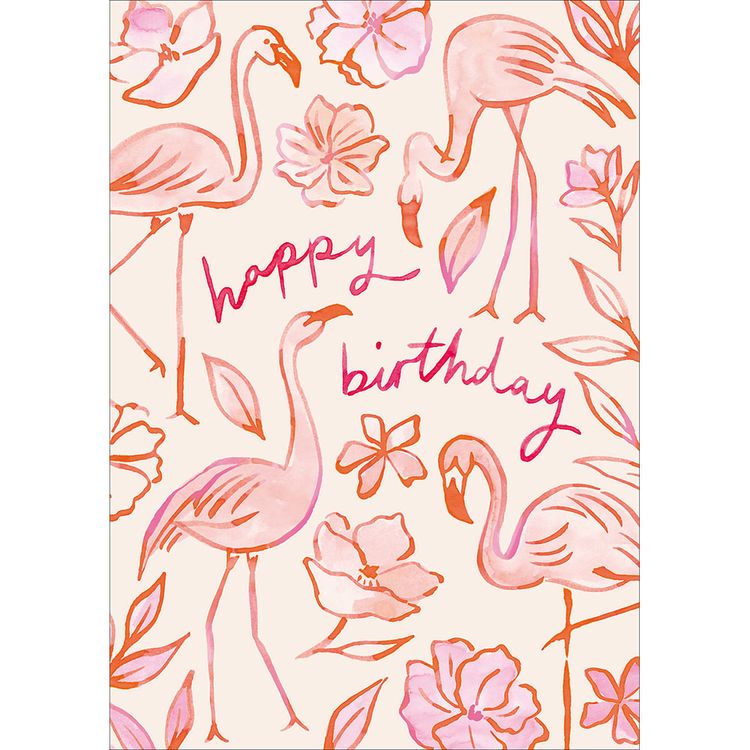 Flamingos and Flowers Greetings Card