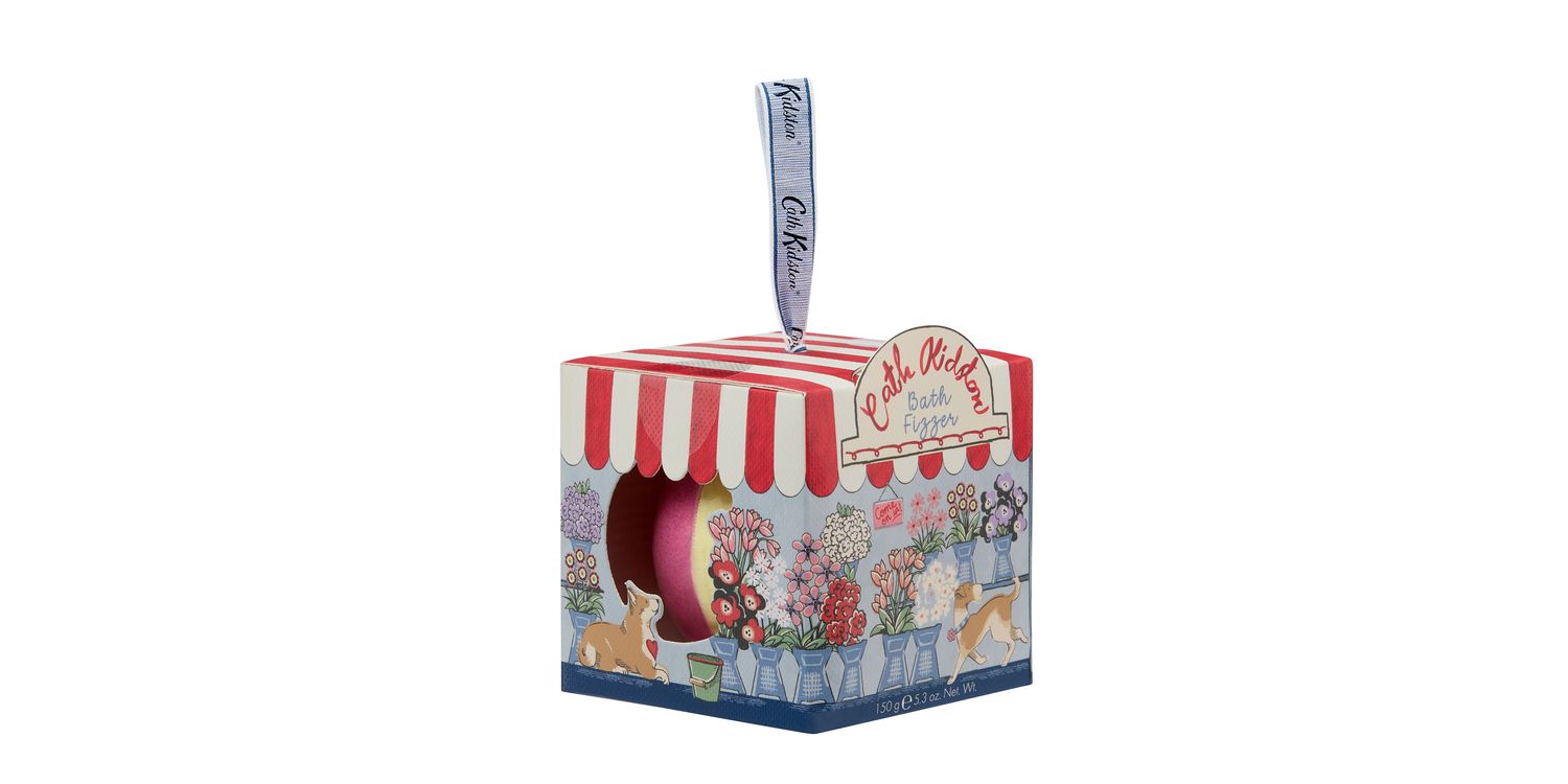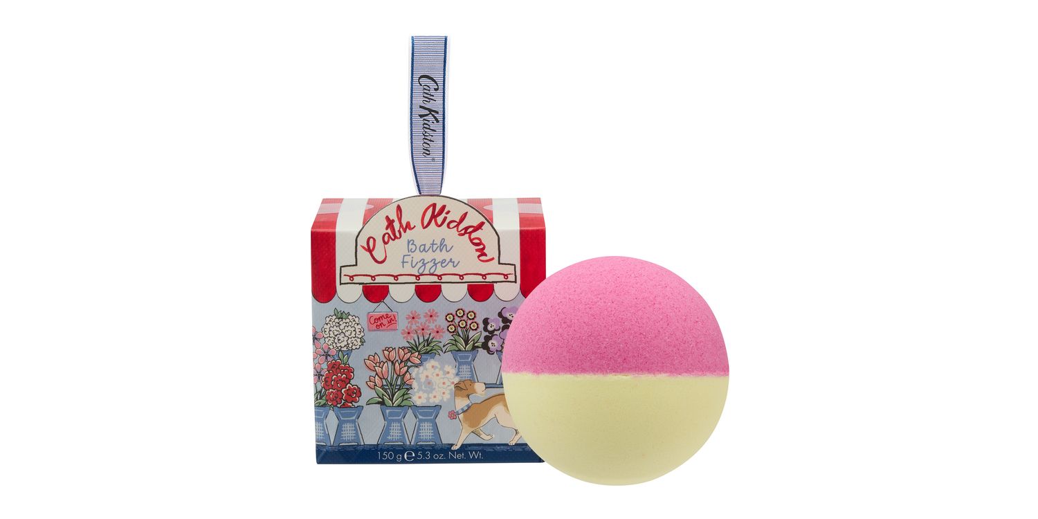 Bring vibrant scents of the flower market to bath time with this fruity scented, duo coloured bath fizzer with vitamin E.  A perfect bathtime gift in a jolly Cath Kidston Flower Market box, with hand painted illustrations and looped hanging ribbon.