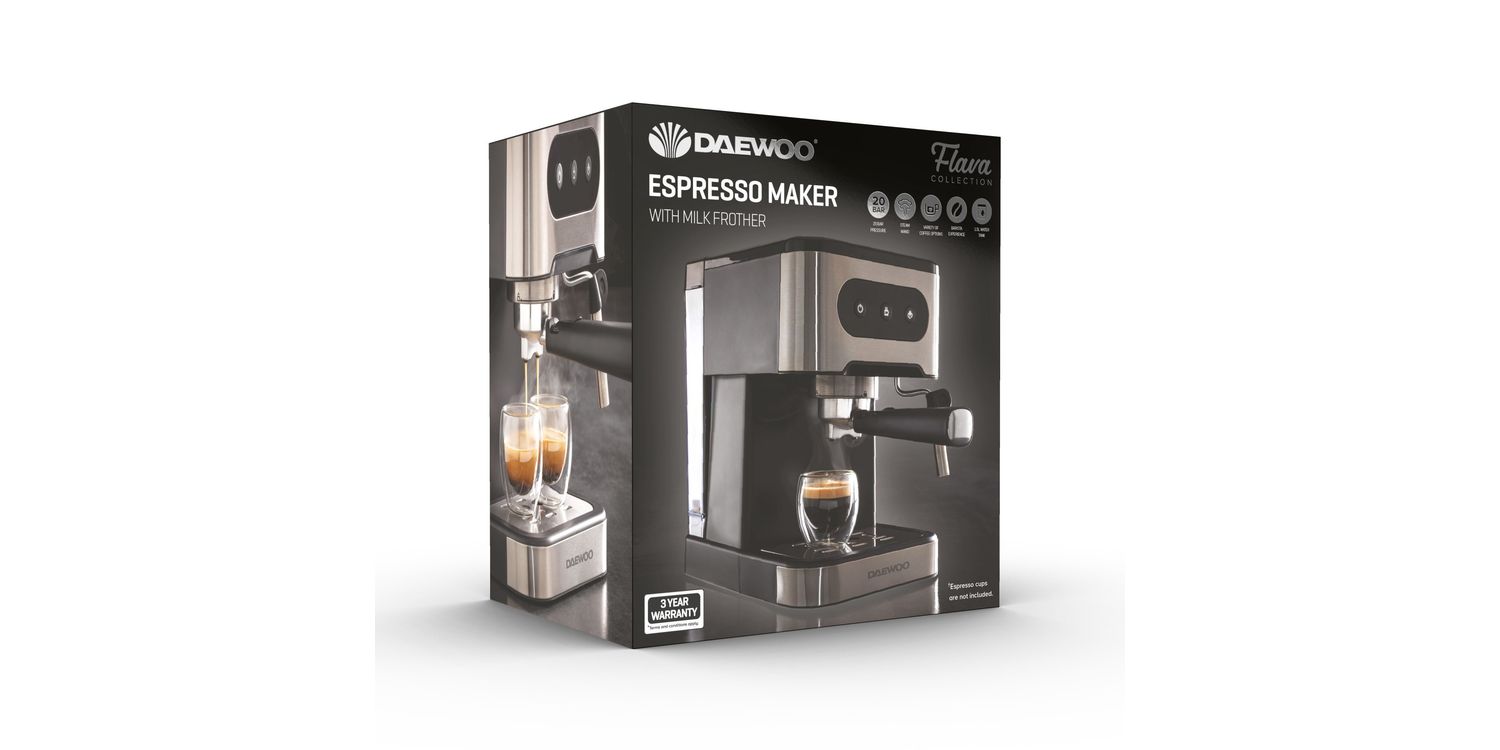 Introducing the Daewoo 20 Bar Espresso Coffee Maker with Steam Wand - your gateway to café-quality coffee in the comfort of your home. With a powerful 20-bar pressure system, this espresso machine delivers rich, full-bodied coffee with a silky crema, perfect for those who appreciate a professionally brewed cup.