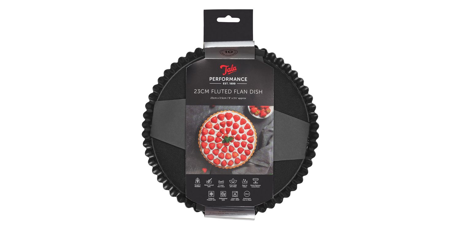 Sturdy and robust the Tala Performance range of baking and roasting kitchenware has been revolutionising the way food enthusiasts and professionals have been grilling roasting and baking their meals. Built from heavy-duty robust 1.0mm thick carbon steel with a super durable non-stick coating Tala Performance will deliver outstanding results time after time. With over 60 pieces in the range from cake tins and baking trays to roasters and pie dishes the collection is specifically designed for space saving in mind and has a ten year quality guarantee meaning you can trust these products are designed to last a lifetime.The range is designed with beautifully rolled edges to provide extra strength and making each piece rust resistant; these products resist warping or rusting. Food is released flawlessly and intact allowing you to cook with little or no added grease oil or parchment paper for healthier results. The non-stick qualities of the range is due to the superior Whitford Eclipse double layered coating which is used. Whitford are a world specialist in non-stick coatings and extensive testing and research has confirmed that the Whitford Eclipse is the very best non-stick coating available out-performing other conventional coatings. The coating is applied using the best methods and the finest state of the art non-stick spray coating facilities meaning a continuous and stable coating is used so each batch is the same. Its outstanding non-stick qualities are also completely PFOA (perfluorooctanoic acid) and BPA free. The coating gives the range a sleek glossy appearance and premium feel. The gloss finish allows food to heat evenly and makes the pieces a dream to clean.The UK’s best-loved Tala Performance bakeware is tried tested and trusted by technical consultants and food technologists allowing you to buy and cook with confidence. More features:• Fridge freezer and dishwasher safe• Safe for use with metal utensils• Heat safe up to 240 degrees Celsius • All cake tins from the range are embossed with tin size to make identifying the right tin for the right recipe no problem! Logo branded.