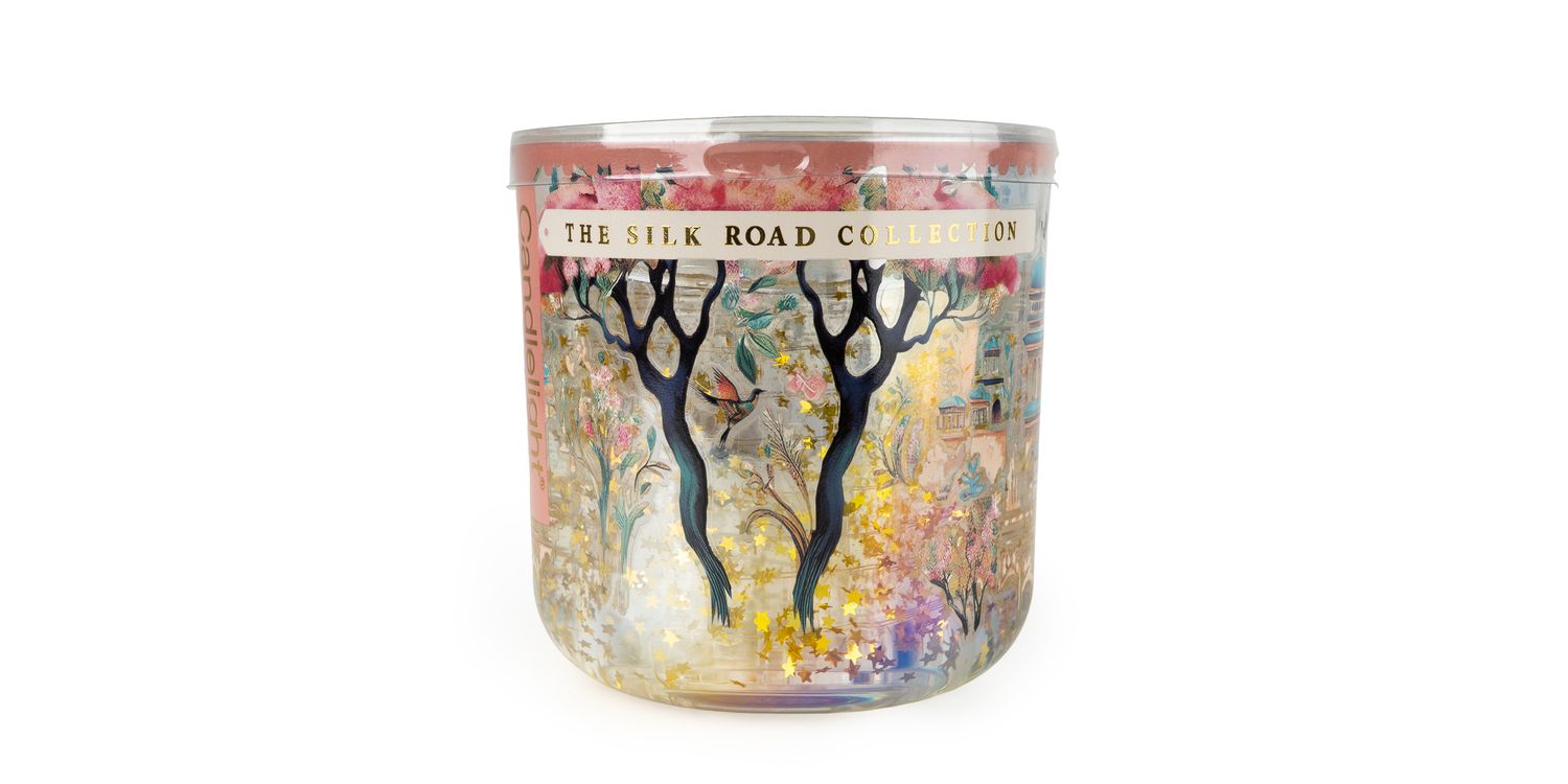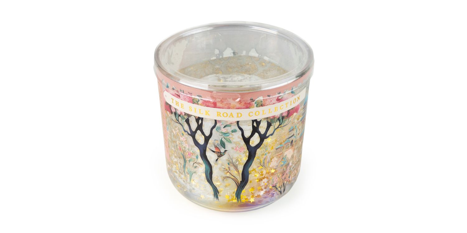 Inspired by the blossom-filled gardens and jewel-toned domes of Jhangye, this LED Candle from The Silk Road Collection arrives in an illustrated glass vessel scattered with golden star confetti for a truly enchanting finish.