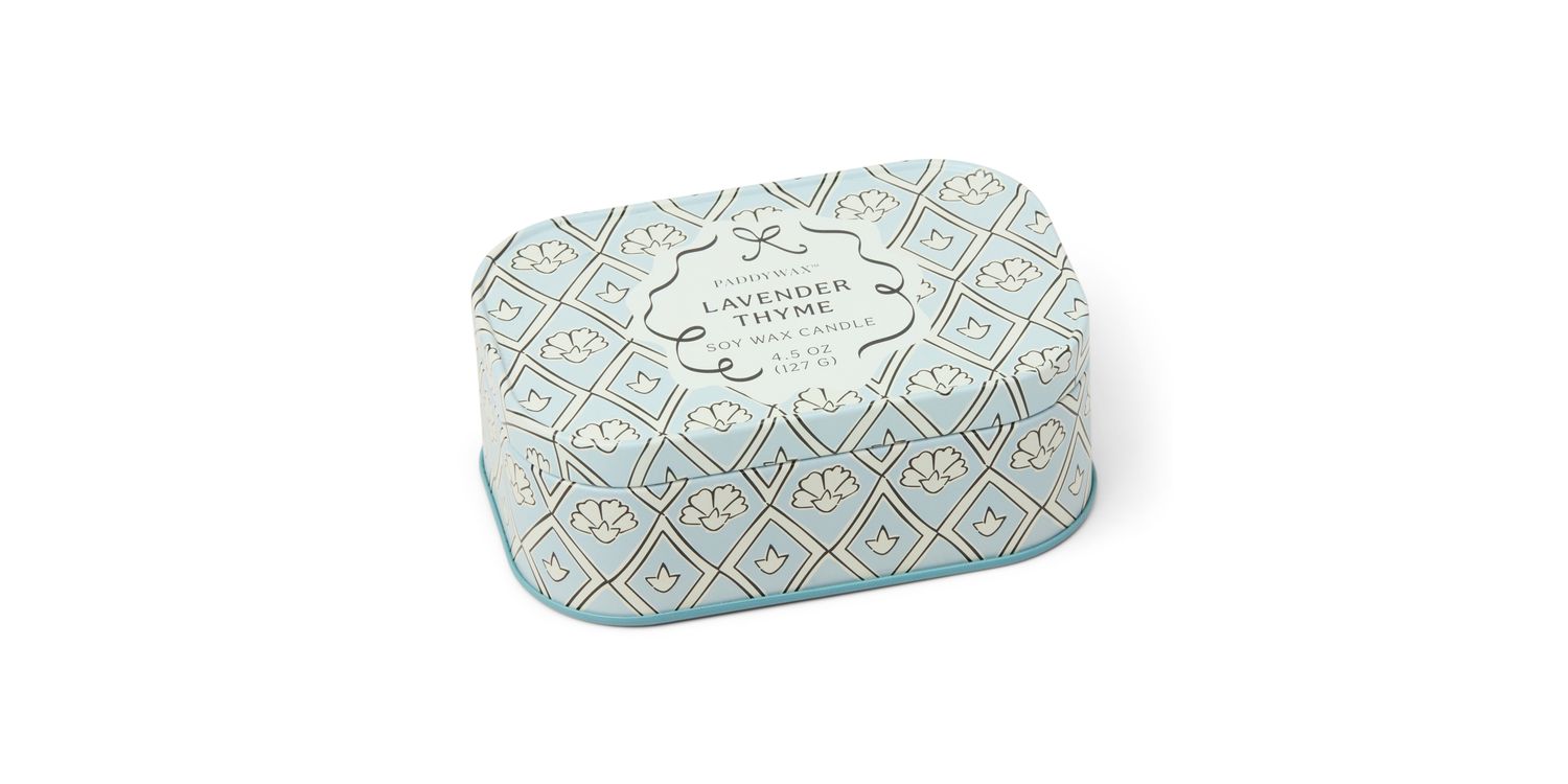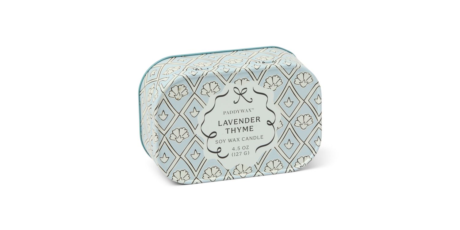 Bring a touch of charm and tranquility to any space with the Paddywax Cherie Printed Tin Candle in Lavender & Thyme. The new Paddywax Cherie collection effortlessly brings a touch of charm to any space. As it burns, it fills the room with a refreshing herbaceous bouquet that balances calming florals with crisp, earthy accords.
