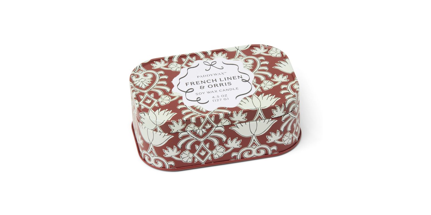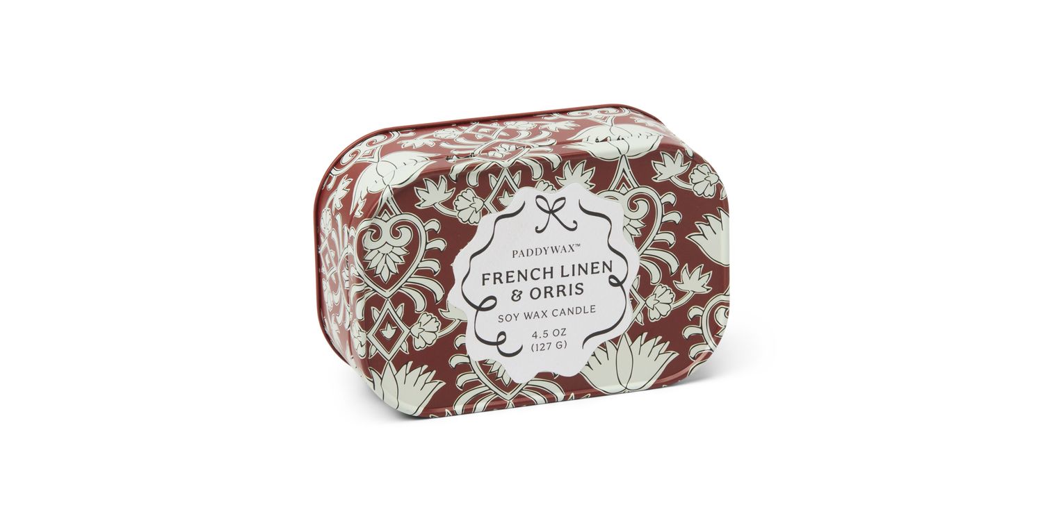 The new Cherie collection effortlessly brings a touch of charm to any space. Indulge in effortless elegance with the Cherie French Linen & Orris Tin Candle from Paddywax.