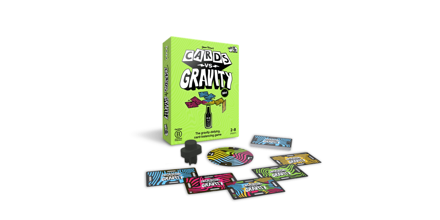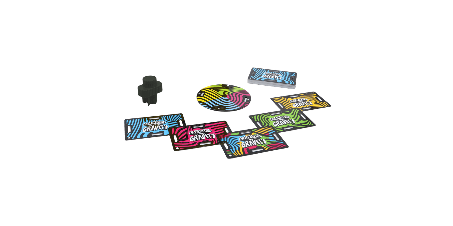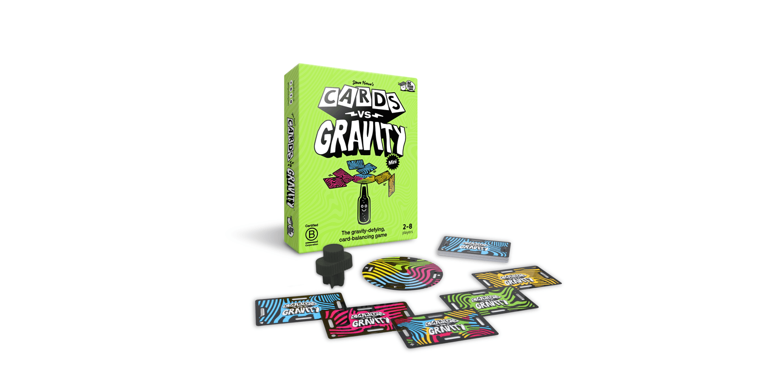 The gravity-defying, card-balancing game. Cards vs Gravity Mini is a tense building game like Jenga but instead of repositioning blocks you balance waterproof cards.