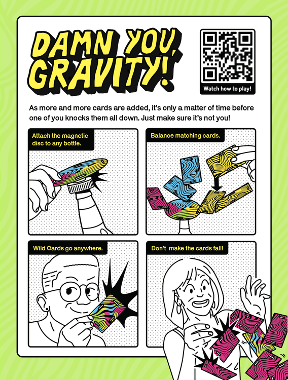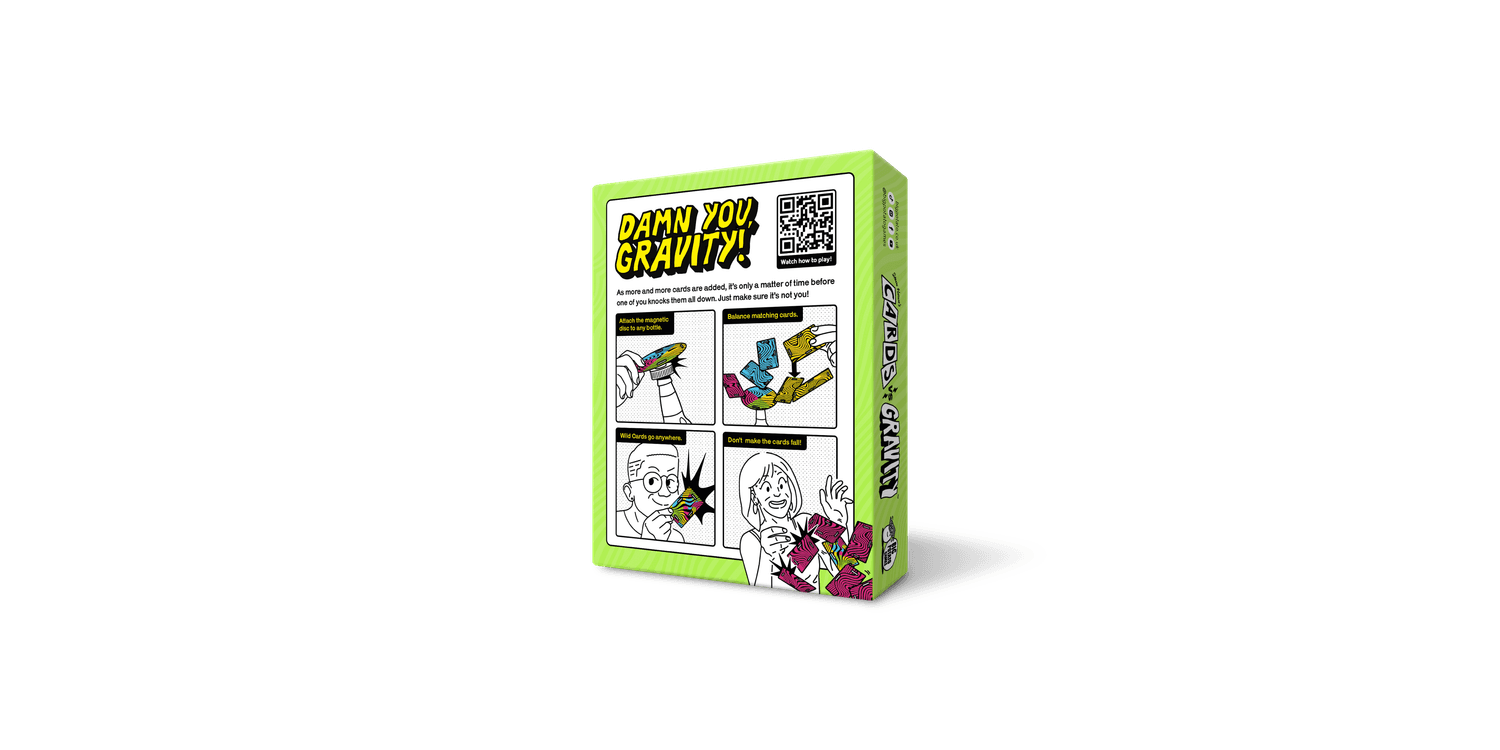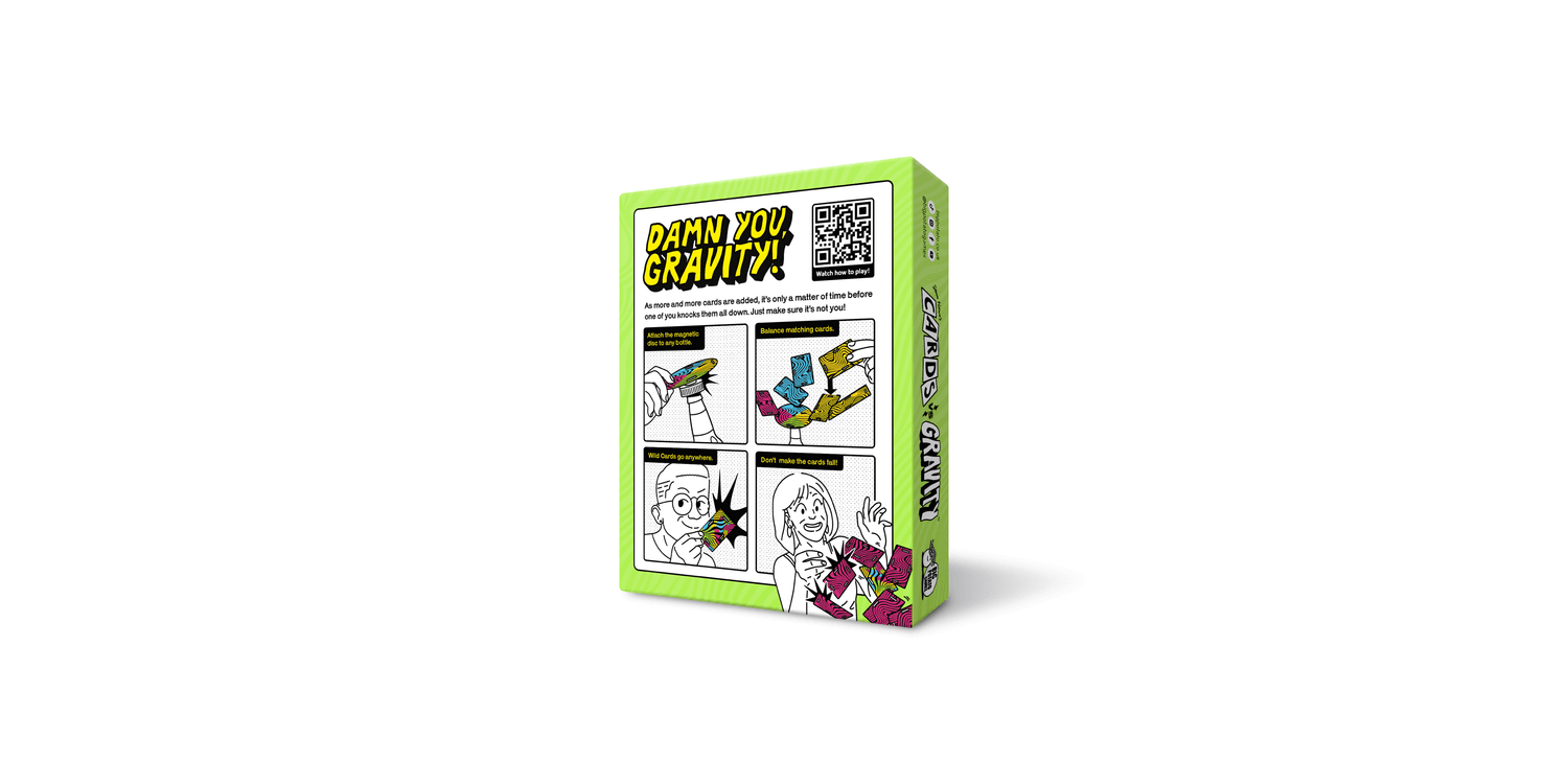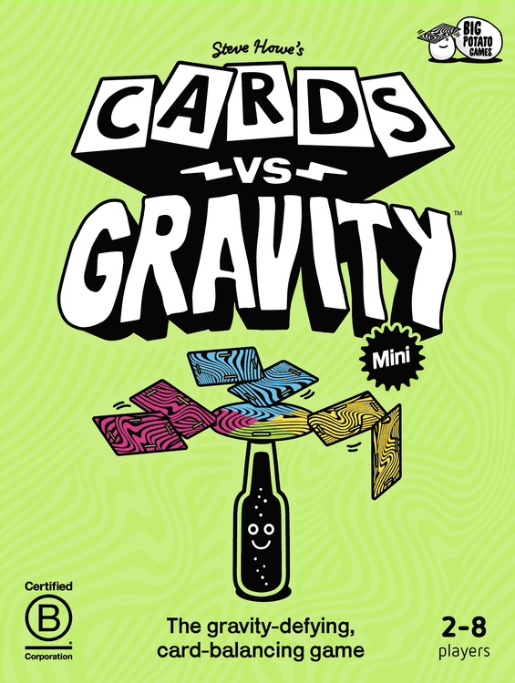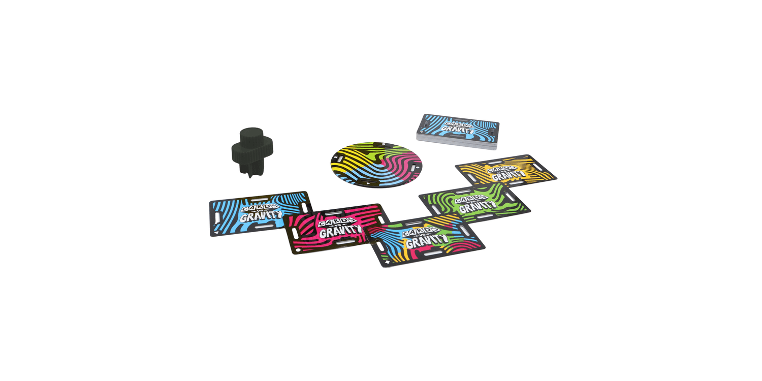The gravity-defying, card-balancing game. Cards vs Gravity Mini is a tense building game like Jenga but instead of repositioning blocks you balance waterproof cards.