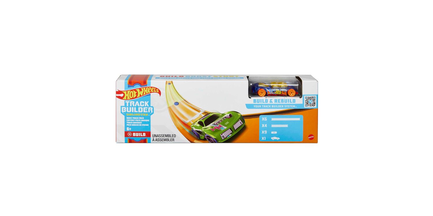 Hot Wheels® Track Builder Unlimited Basic Track Pack is an awesome starter set for the new track builder and also includes the essential materials to expand a pre-existing build (sold separately). It comes with ten pieces of track, nine connectors, and one 1:64 scale Hot Wheels® vehicle. Hot Wheels® Track Builder revs creative play and exercises problem-solving muscles making it a great gift for kids six years old and older. Colours and decorations may vary.