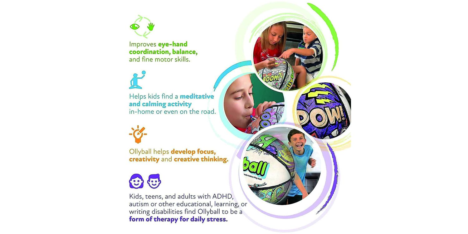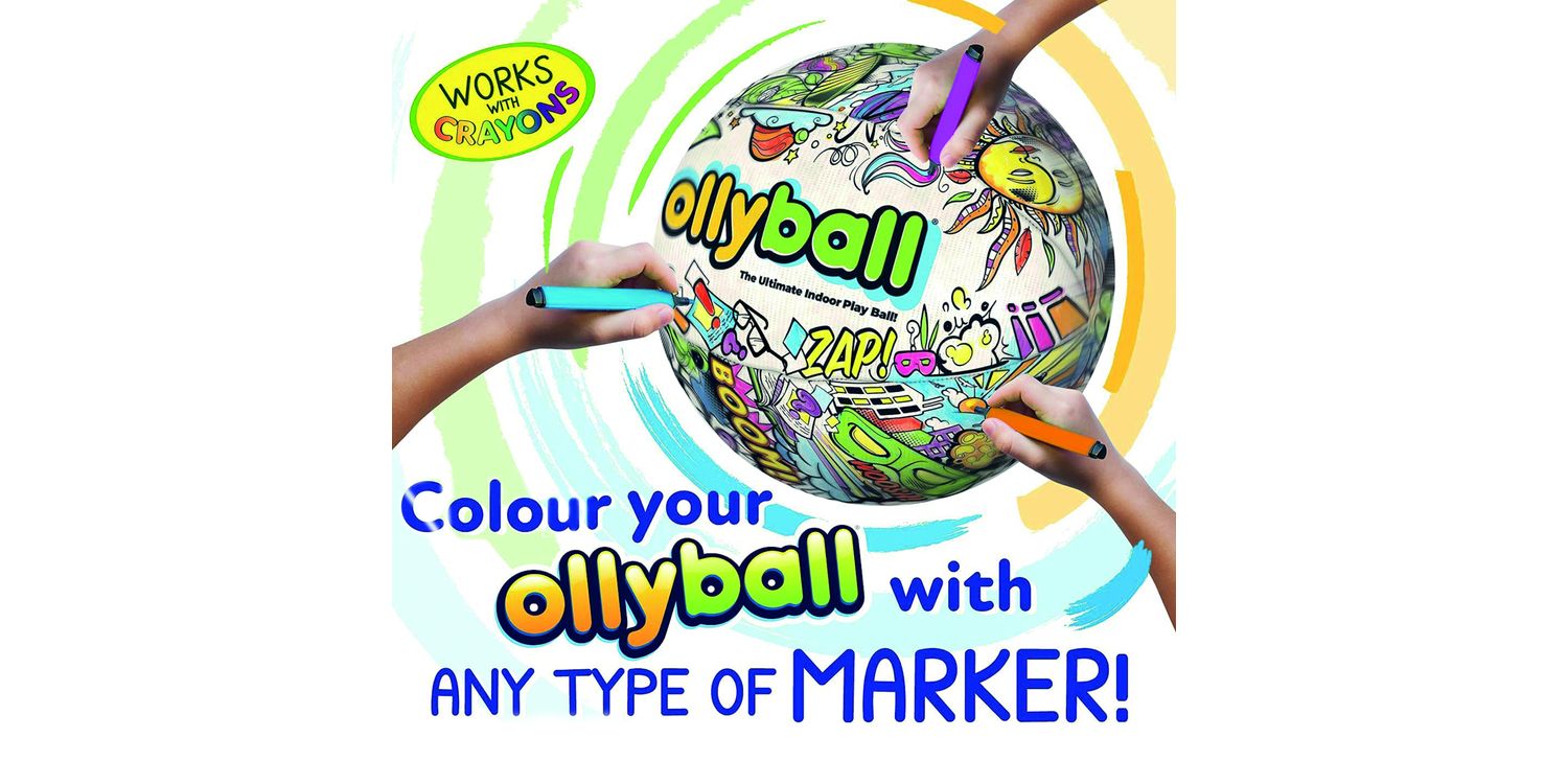 Ollyball is the Ultimate Indoor Play Ball designed for full-speed and full-force indoor play. This super lightweight ball absorbs shock with its patented KrunchCOR® construction. Kids can now safely play ball in the house in any weather, day or night, without the risk of damaging furniture or breaking windows! What makes Ollyball the “Ultimate Indoor Play Ball” is that the Ollyball can also be coloured-in with markers and crayons.