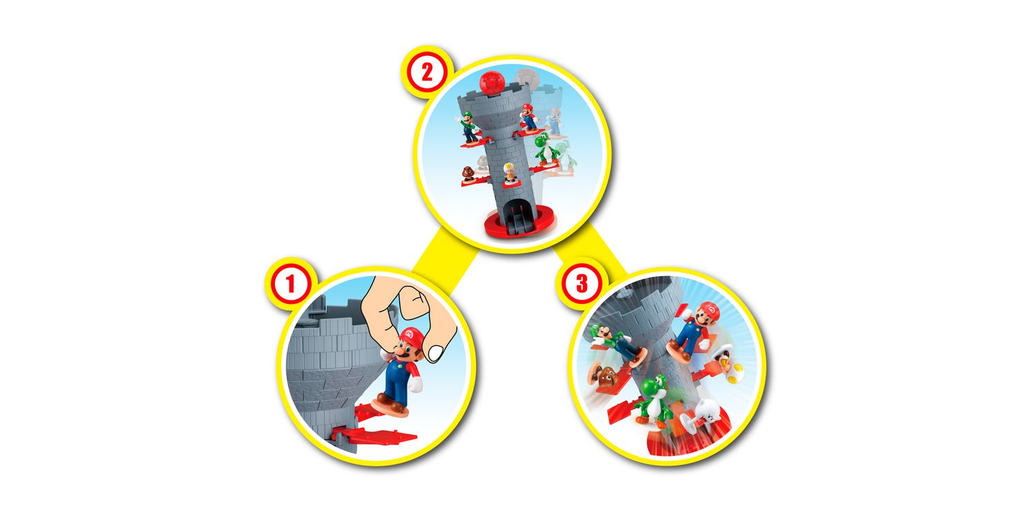 Super Mario Shaky Tower is an exciting balancing game to play with friends! Place the Mario figures on the tower, but be careful! Make sure you don't knock the ball off the tower! Who will win? Super Mario Blow Up! Shaky Tower is an exciting balance game. Place the Mario figures on the tower making sure not to drop the ball placed on top of the tower.