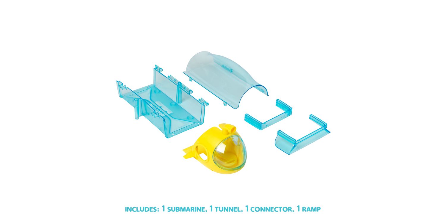 • Includes 1 x submarine, 1 x tunnel, 1 x ramp and 1 x connector. Connects to all Zhu Zhu playsets. Fish sold separately.