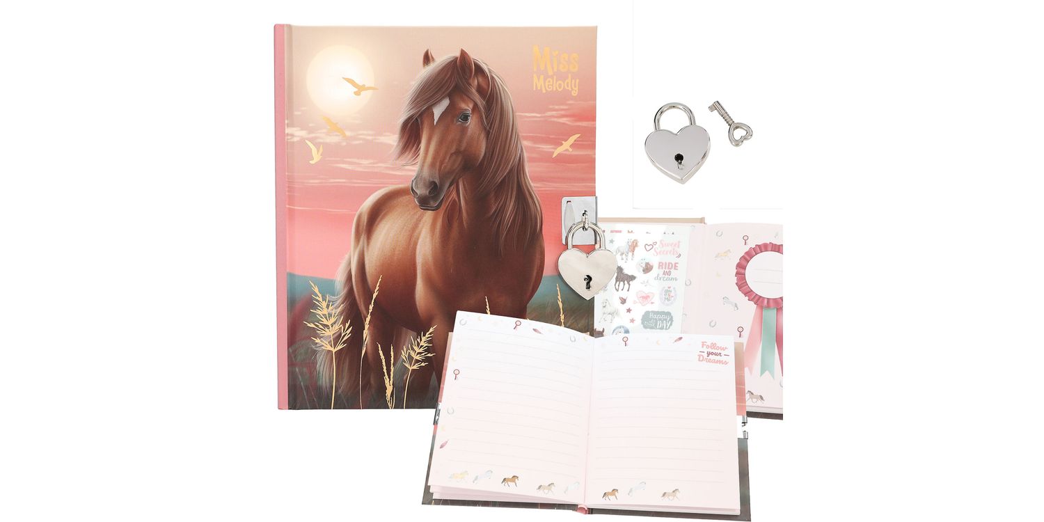 For secret thoughts and wishes: Miss Melody's diary with silver heart lock has 192 finely lined, beautifully illustrated pages and two sheets of colourful stickers to embellish.