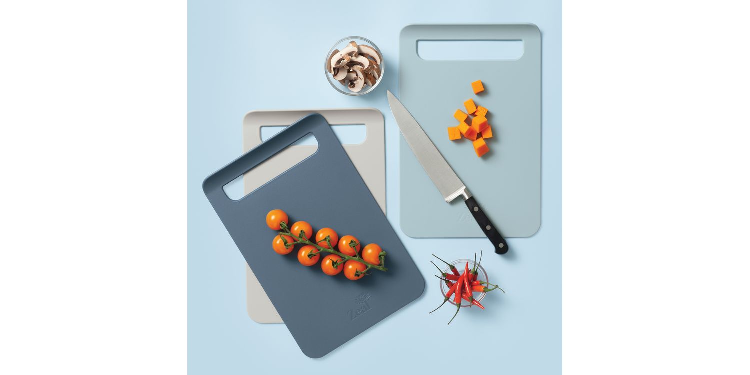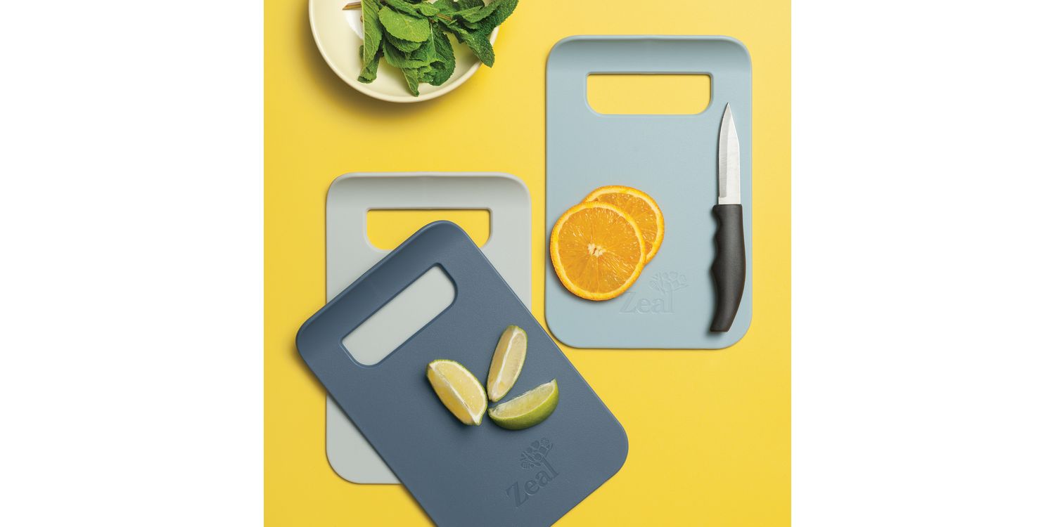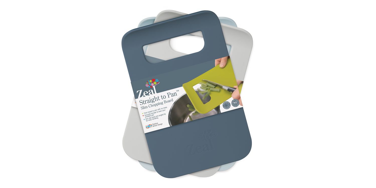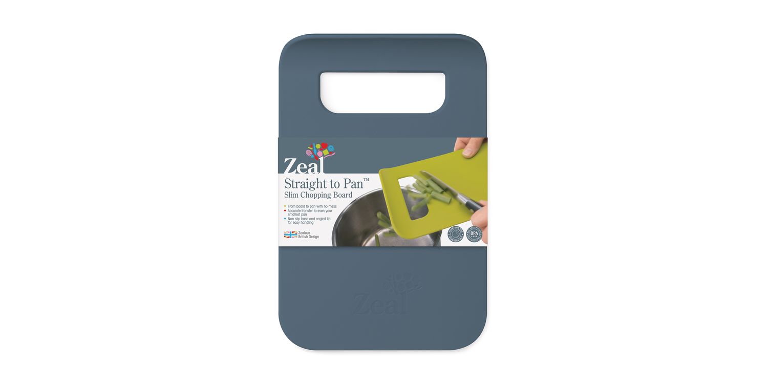 Cut, chop, slice and transfer foods direct to the pan with our Zeal Straight to pan™ ultra slim cutting board. Designed so the carry handle doubles up as a hole for transferring foods, this board will keep your worktops clean and free from mess.