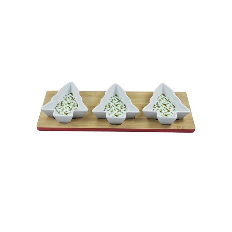 Serve nibbles, dips or sweets from these charming tree shaped dishes, featuring a holly foliage and berries motif.