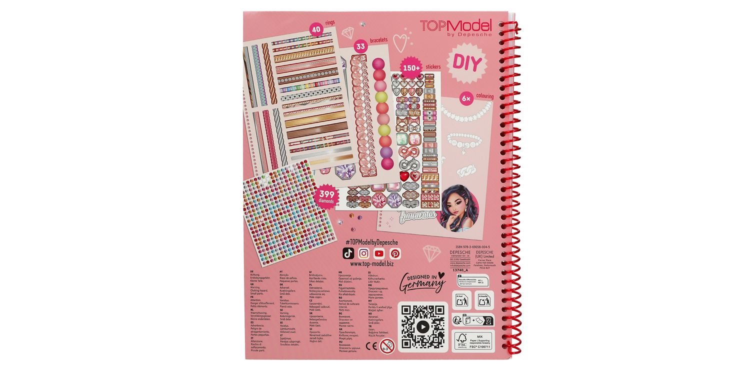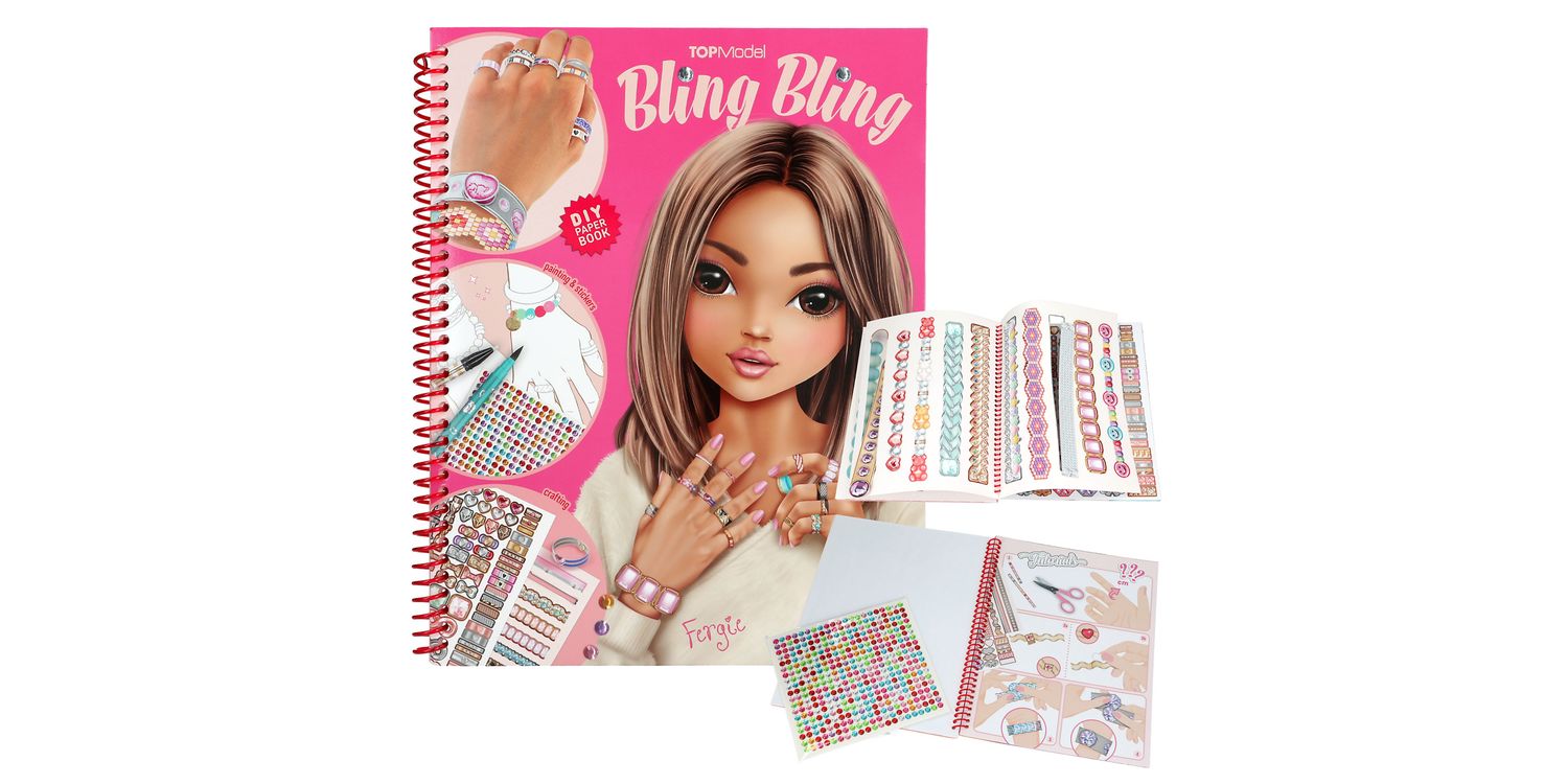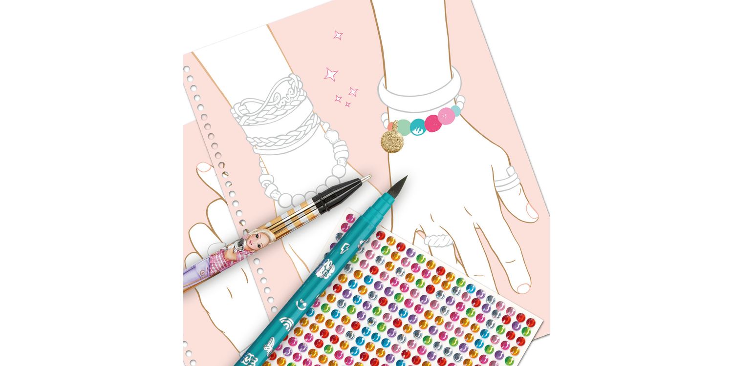 TOPModel creative book all about cool jewellery 14 craft pages with rings and bracelets to cut out 1 sheet of colourful sticker stones for decorating Colouring pages, craft instructions, inspiration Beautiful Bling Bling: The TOPModel creative book contains pages and pages of cool jewellery to make and wear, colour in and decorate.