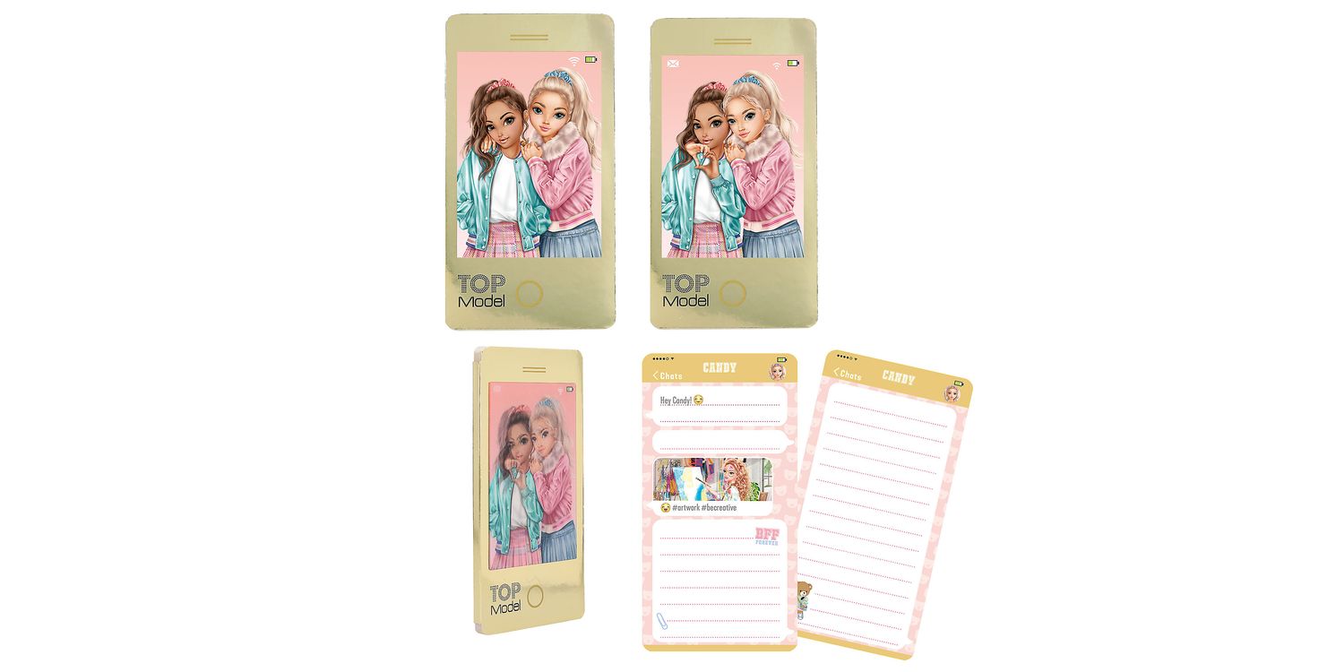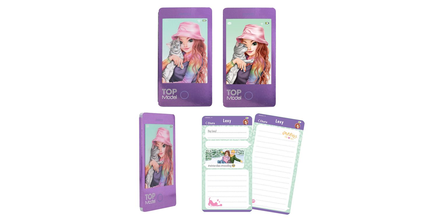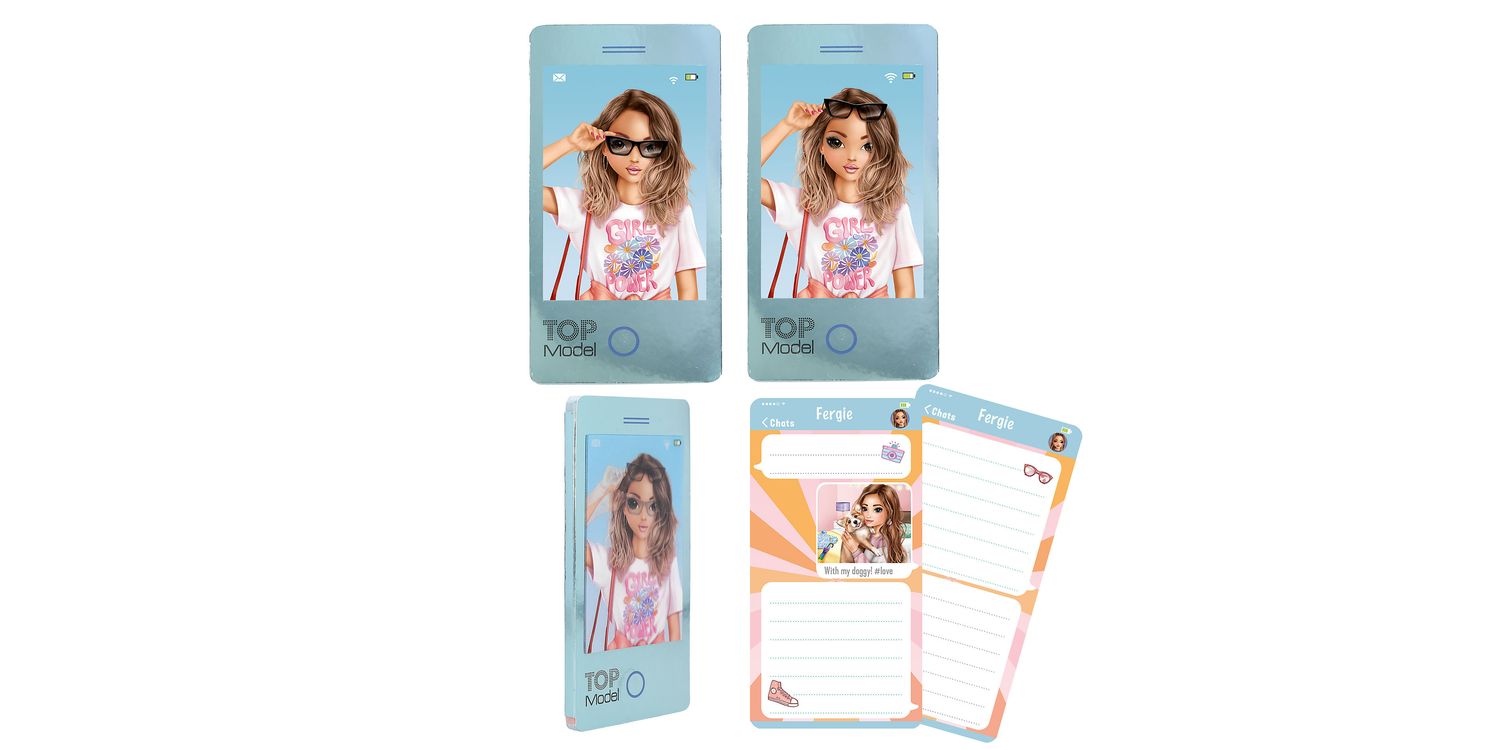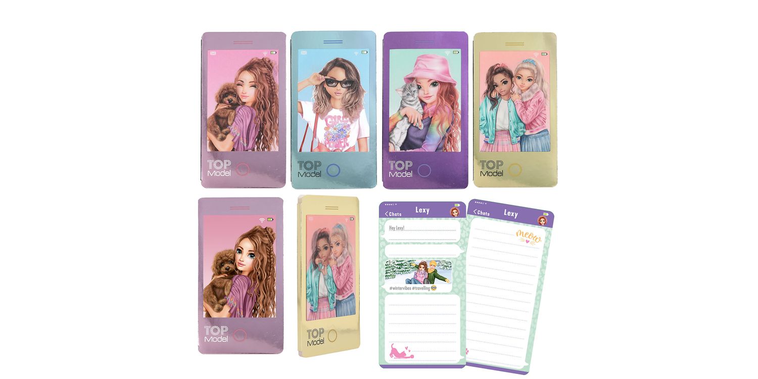 A call from the TOPModels? No, a super cool notepad in smartphone look. With a wobbly picture on the cover and 80 elaborately designed pages with a chat look. Available in 4 different designs.